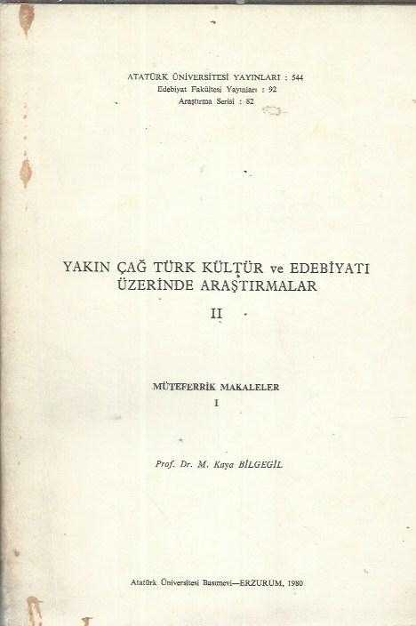 Yakın Çağ Türk Kültür ve Edebiyatı Üzerinde Araştırmalar II, Müteferrik Makaleler I, M. Kaya Bilgegil (Prof. Dr.) tarafından kaleme alınmıştır. Kitap 1980 yılında Atatürk Üniversitesi, Edebiyat Fakültesi tarafından [ERZURUM] yayınlanmıştır. 522 sayfadır. Yakın Çağ Türk Kültür ve Edebiyatı Üzerinde Araştırmalar II, Müteferrik Makaleler I adlı eser Türkçe dilindedir.
