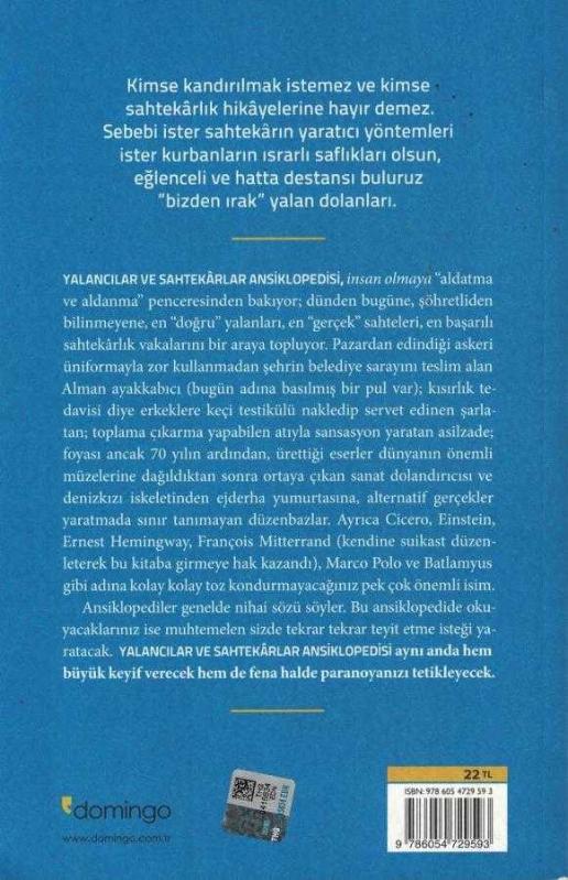 Yalancılar ve Sahtekarlar Ansiklopedisi adlı eser, Kitap > Edebiyat, Kurgu > Diğer kategorisinde İkinci El olarak satıştadır.