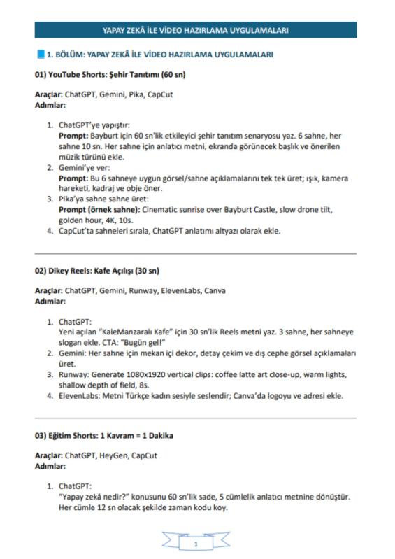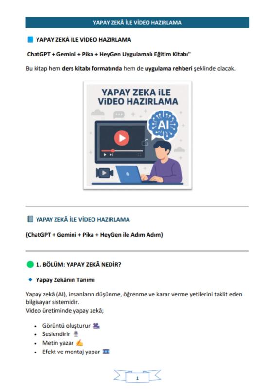 YAPAY ZEKÂ İLE VİDEO HAZIRLAMA EĞİTİM SETİ (3 KİTAP) “Tek Tıkla Profesyonel Video Üretimi Öğren!” Set İçeriği: Renkli Konu Anlatımı Kitabı – Adım adım, görsellerle desteklenmiş, kolay anlaşılır anlatım. 400 Test Sorusunun Olduğu Kitap – Bilgini ölç, öğrendiklerini pekiştir! 400 Uygulama Kitabı – Yapay zekâ araçlarıyla birebir uygulama! Her sayfa, seni profesyonel video üretimine bir adım daha yaklaştırır. Neden Bu Kitap Seti? ✔️ Sıfırdan başlayanlar için anlaşılır bir dille hazırlandı. ✔️ İçerik üreticileri, öğretmenler, girişimciler, sosyal medya uzmanları için ideal. ✔️ Gerçek örneklerle desteklenmiş pratik eğitim içerir. ✔️ Adım adım ilerleyen 400 uygulama, yapay zekâyı bizzat deneyimlemeni sağlar. ✔️ Tüm kitaplar spiral ciltlidir – masada, stüdyoda, ofiste rahat kullanım için. ✔️ Sürekli güncellenen içerikler sayesinde her zaman en yeni bilgilere ulaşırsın. ________________________________________ Bu Setle Neler Öğreneceksin? Videoları sıfırdan oluşturmayı, Yapay zekâ araçlarını etkin kullanmayı, Seslendirme, kurgu, senaryo ve otomatik altyazı tekniklerini, Sosyal medyada etkileşim artıran içerikler üretmeyi, Kendi dijital markanı profesyonelce tanıtmayı! Unutma! Bu set yalnızca bir eğitim değil, geleceğin mesleğine açılan bir kapı. Artık video üretmek için pahalı yazılımlara veya teknik bilgiye gerek yok. Yapay zekâ senin asistanın olacak, sen sadece hayal edeceksin! “Yapay Zekâ ile Video Hazırlama Eğitim Seti” ile Hayalini kur, Uygulamayı yap, Profesyonel videonu oluştur!