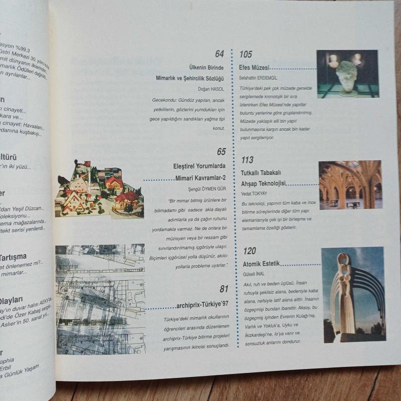 195, 196 ve 197 inci sayilar. 1998 yili, Şubat,Mart,Nisan aylari. Her sayi yaklasik 100 sayfadan olusuyor. Genel konu başliklari; Islam Sanatlari Muzesi,Doha/Katar Edirne Yeni Sarayı Frank O. Gehry ve Bilbao Guggenheim Müzesi Izmir Konak Pier(Eski Balik Hali) Efes Müzesi