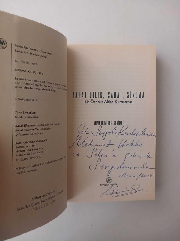 Yaratıcılık Sanat Sinema - Bir Örnek: Akira Kurosawa [ İmzalı - İthaflı ], Arzu Demirer Sevimli tarafından kaleme alınmıştır. Kitap 2018 yılında Milenyum Yayınları tarafından [İstanbul] yayınlanmıştır. 312 sayfadır. Yaratıcılık Sanat Sinema - Bir Örnek: Akira Kurosawa [ İmzalı - İthaflı ] adlı eser Türkçe dilindedir.