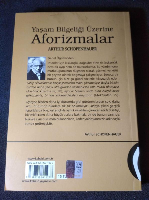 Yaşam Bilgeliği Üzerine Aforizmalar adlı eser, Kitap > Özel İlgi Alanları > Hobi ve Kişisel Gelişim kategorisinde Yeni olarak satıştadır.