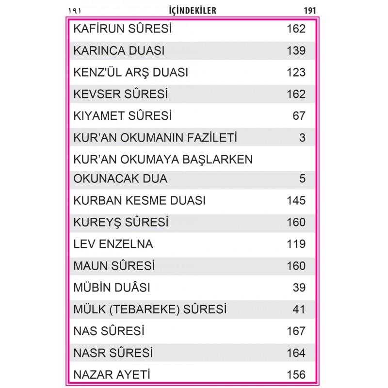 CEP BOY BİLGİSAYAR HATLI YASİN-İ ŞERİF 2. Hamur Kağıt, Karton Kapak, 192 sayfa, Cenaze ve Özel Günleriniz için size Özel isimli Yasini Şerif İçindeki Başlıca Sureler Tevbe İstifar Duası Kuran Okumanın Fazileti Kuran Okumaya Başlarken Okunacak Dua Fatiha Suresi Fil Suresi Kureyş Suresi Maun Suresi Kevser Suresi Kafirun Suresi Nasr suresi Tebbet Suresi İhlas Suresi Felak Suresi Nas Suresi Kadir Suresi Asr Suresi Ayetl Kürsi Subhaneke Ettehiyyatü Allahümme Salli Allahümme Barik Allahümme Rabbena Allahümme Nesta'inuke Allahümme İyyakena'büdü Yasini Şerif Suresinin Fazileti Yasin Suresi / Okunuşu ve Meali Yasin Suresi Yasin Duası Mübin Duası Ezan Duası Mülk [ Tebareke ] Suresi Meal ve Okunuşu Mülk [ Tebareke ] Suresi Amme [ Nebe ] Suresi Meal ve Okunuşu Amme [ Nebe ] Suresi Cuma Suresi Meal ve Okunuşu Cuma Suresi Kıyamet Suresi Meal ve Okunuşu Kıyamet Suresi Fetih Suresi Meal ve Okunuşu Fetih Suresi Duhan Suresi Meal ve Okunuşu Duhan Suresi Vakıa Suresi Meal ve Okunuşu Vakıa Suresi Amene'r Resulu Okunuş Amene'r Resulu Ayetel Kürsi Lev Enzelna [ Hüvalla Hüllezi ] Kenzül Arş Duası Kenzül Arş Duasının Okunuşu İstihare Duası Selati Münciye 4444 Dua Salat-ı Tefriciye İmamı Azamın Tesbih Duası Karınca Duası Hacet Duası Kurban Kesme Duası 52. Gece Kabir Duası İsmi Azam Duası Mübarek Üç aylar Duası Seyyidül İstiğfar Duası Zilzal Suresi Zilzal Duası Yemek Duası İftar Duası Ahidname Tüm Duaları Kapsayan Dua İman Tazeleme Duası Nazar İçin Okunacak Dua Esma'ül Hüsna Hatim Duası [ Arapça ] Hatim Duası [ Manası ] 32 Farz İmanın Şartları İslamın Şartları Abdestin Farzı Gusülün Farzı Teyemmümün Farzı Namazın Farzı 54 Farz