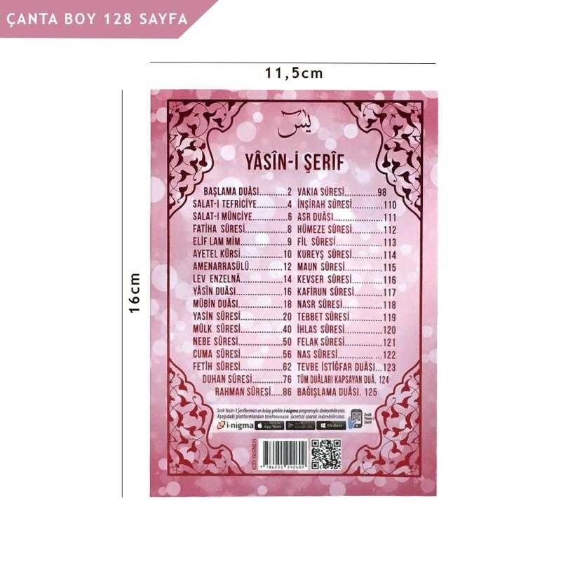 Yasini Şerif Pembe Renk Türkçe Okunuşlu ve Mealli Çanta Boy 144 Sayfa, 1.Hamur Kağıt, 4 Renk Baskı, Lüks Karton Kapak