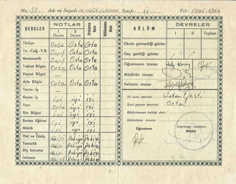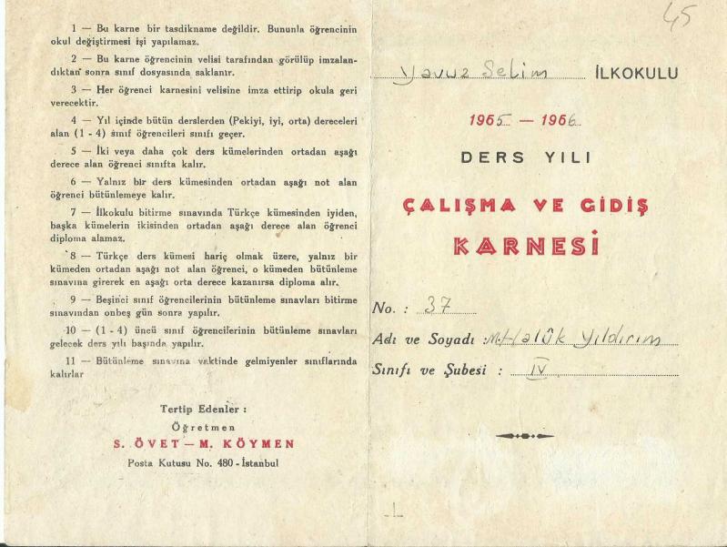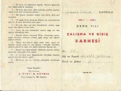 Yavuz Selim İlkokulu 1965 - 1966 Ders Yılı Çalışma ve Gidiş Karnesi, en son 1 yıl önce güncellenmiştir.