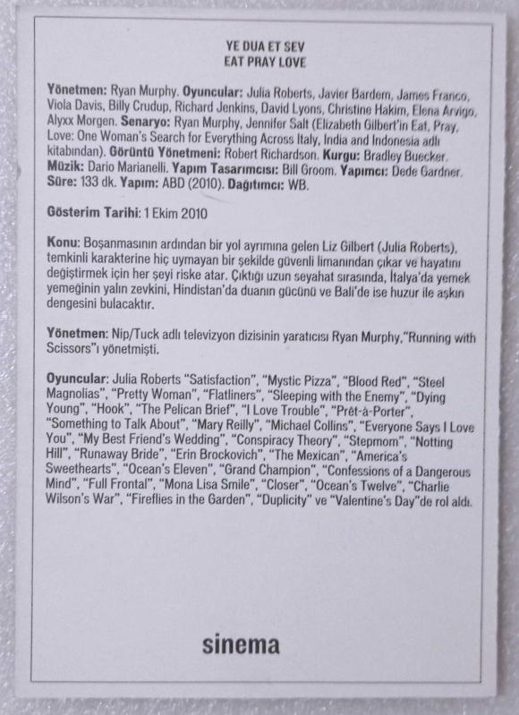 Ye dua et sev * Eat pray love * Julia Roberts & Javier Bardem ~ [ SİNEMA KARTI ] başlıklı ürün, Efemera, Müzik, Sinema > Sinema, Film, Dizi > Lobi Kart ve Koleksiyon Kartı kategorisi altında İkinci El olarak satılmaktadır.