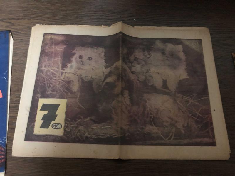 Dergi katlanmış Yedigün Dergisi- Nevin Holmes- Doğan Uluç- Ekrem Altınkaynak- Albert DeSalvo- En esrarengiz yaratık: Kedi- Dünya Dans Kralı- Herşeyin bir nedeni var Yıpranma, sararmalar ve yırtılmalar zamana bağlı olarak görülebilir.
