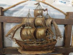 Yelkenli Gemi.. El emeği tenekeden yapılmış duvar süsü..46 x 32 cm..