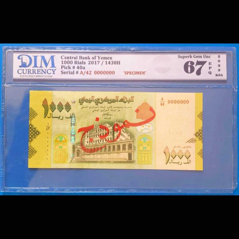 Yemen 1000 riyal 2017 Çil SPECIMEN Yüksek kondisyon, 2 ay önce satışa sunulmuştur.