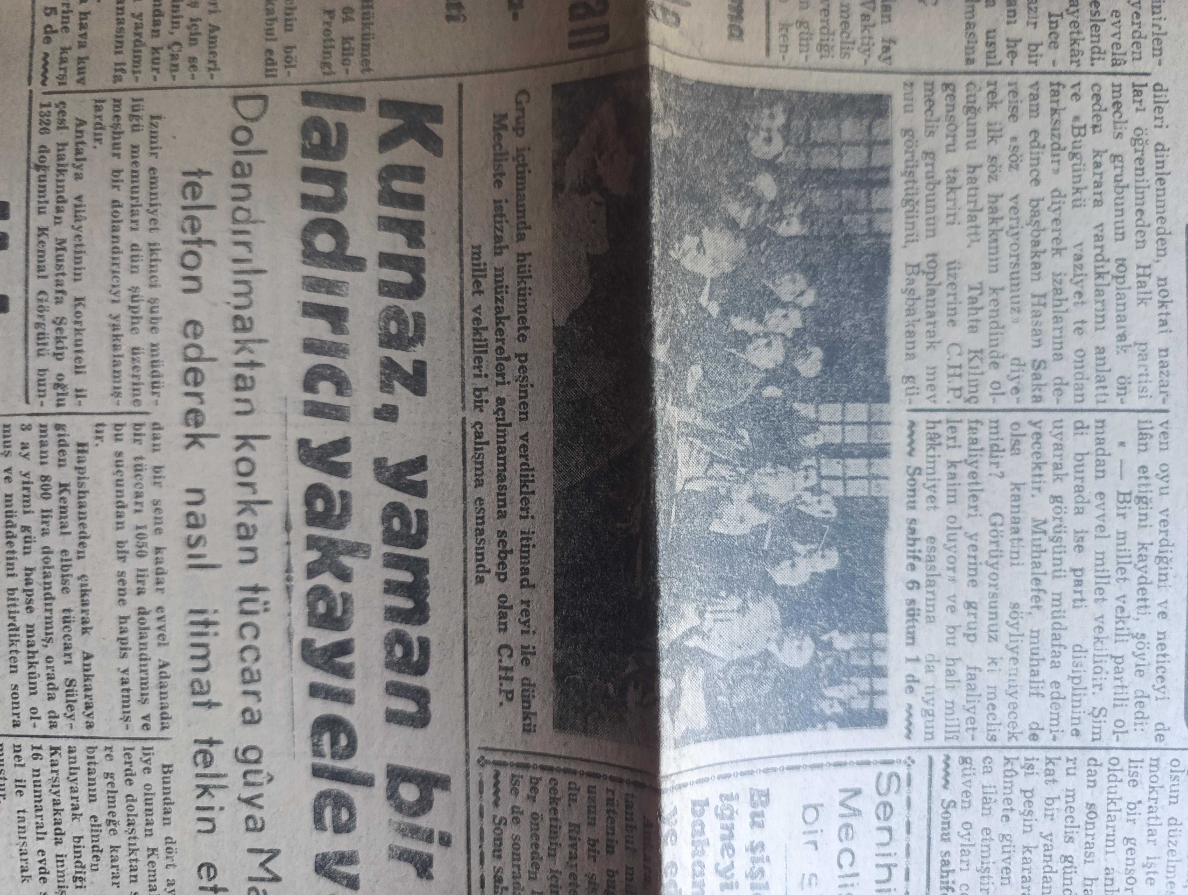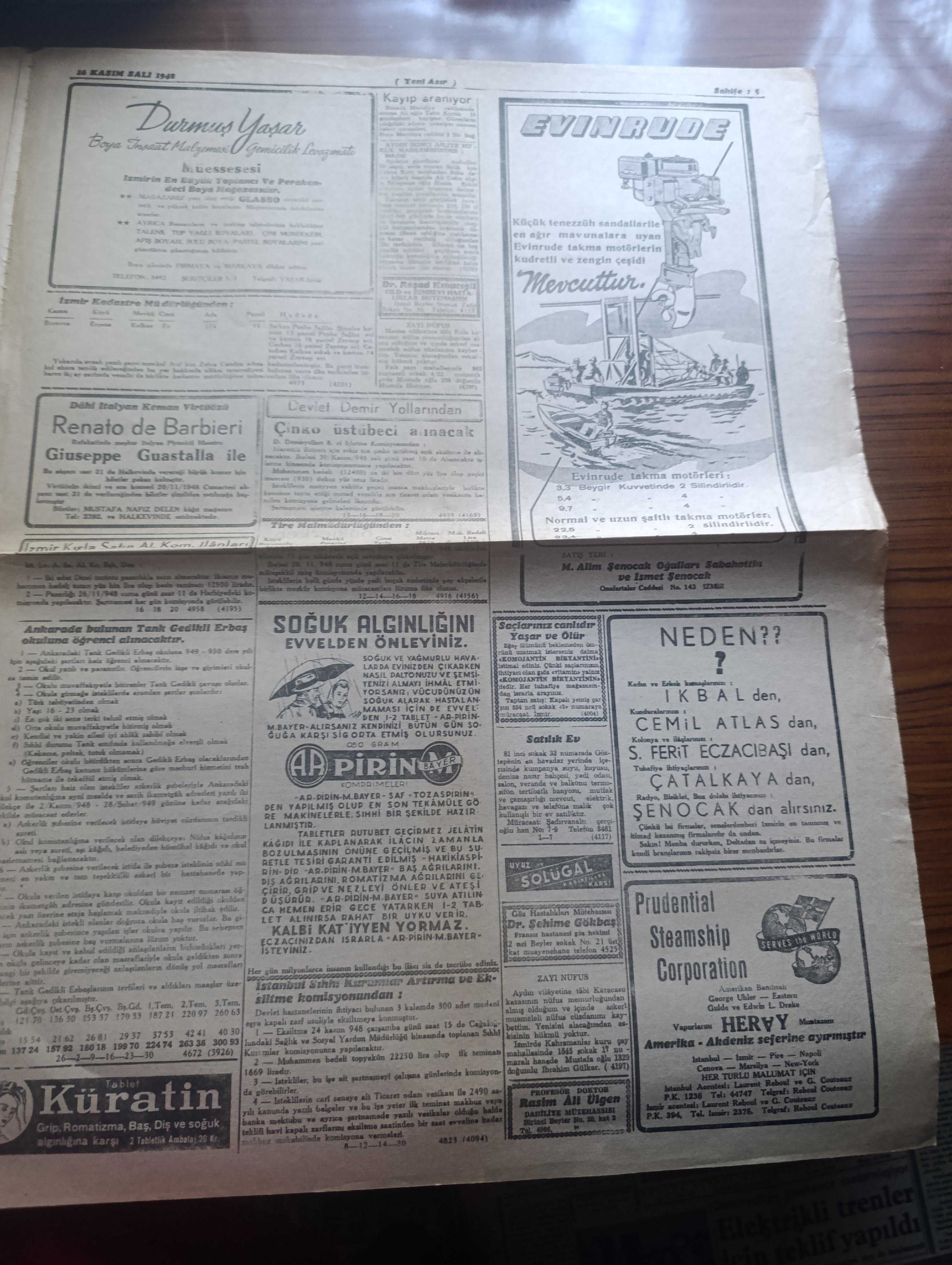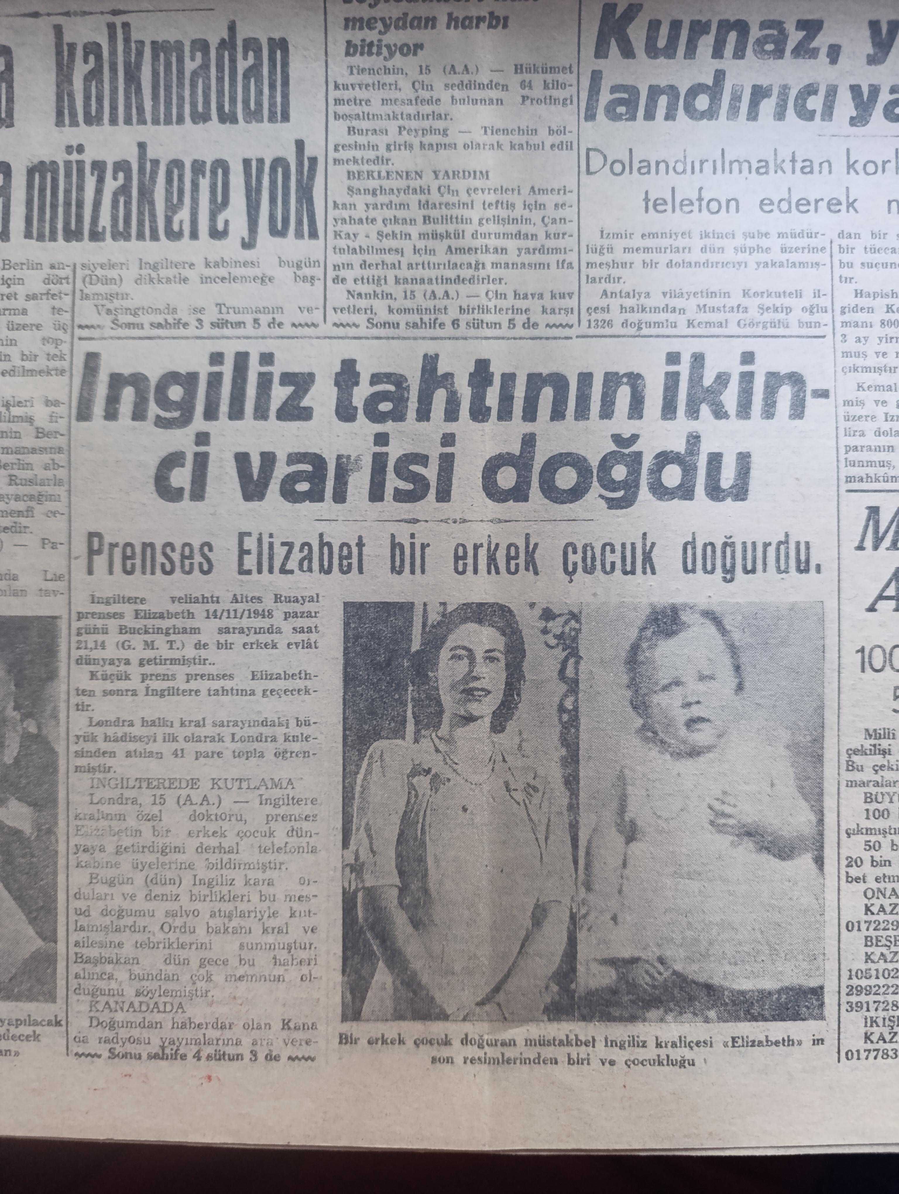 Yeni Asır Gazetesi - 16 Kasım 1948 - CHP grubu itimatrayı verdiğinden Demokrat Parti mecliste münakaşa açmadı - Filistin'de yeni inkişaflar Yahudiler Necef'ten çekil emrini reddedecekler - bir milletvekili dün mecliste şöyle dedi hükümet elindeki yetki ile memleketi batırabilir - dünkü mecliste Demokrat Parti'nin sükutundaki mana - İstanbul milletvekili Senihi Yürüten meclise uzun bir şişle gitti - Üçler bugün berlin'i konuşacak albuka kalkmadan Ruslarla müzakere yok - İngiliz tahtının ikinci varisi doğdu - prenses Elizabeth bir erkek çocuk doğurdu fotoğraf - Milli Piyango Dün Ankara'da çekildi 100 bin lira 281516 numaraya çıktı -Eczacıbaşı - devenin karnında yedi kilo Afyon bulundu - rahmetli Hoca yazı dizisi - iktisadi hareketler - Durmuş Yaşar boya inşaat malzemesi - Bayer - göz hastalıkları mütehassısı Doktor Şehime Gökbaş - Avrupa parlamentolar Birliği fikri ve biz - UNESCO heyeti beyrut'a gitti - yeni bir milletvekili Adil Tok'un tutanağı kabul edildi - Emin Sazak adlı eser, Kitap > Süreli Yayınlar > Gazeteler > Türkiye > Genel > Günlük kategorisinde İkinci El olarak satıştadır.