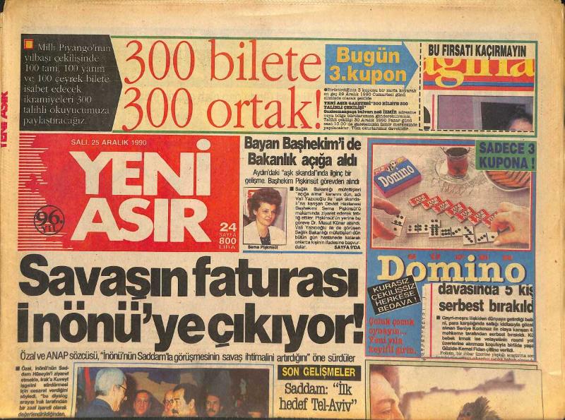Yeni Asır Gazetesi 25 Aralık 1990 - Saddam Korku İçinde Yaşıyor - Woody Allen'dan Şahane Bir Film GZ133556, en son 19 gün önce güncellenmiştir.