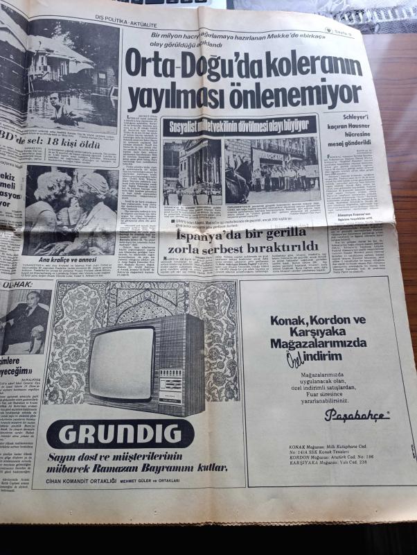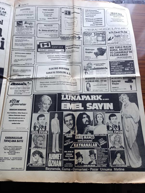 Yeni Asır Gazetesi - Turkish Newspaper - 15 Eylül 1977 - turistler Ege'yi St.Tropez'e çevirdi üstsüz güneşlenenler ortalıkta sevişenler fotoğraf - Halk Bankası 7.5 milyon dolandırıldı - bir şebeke şifreleri ele geçirdi ve ölmüş bir adamın kimliği ile çeşitli şubelerden para çekti - Bülent Ecevit dik dar eşiminde bile böyle bir iktidar yerinde kalamaz dedi - Necmettin Erbakan sanayide İstiklal savaşı başladı - Alparslan Türkeş düşmanlara karşı bütünleşelim - Süleyman Demirel zorlukları yenmek zorundayız - bayram günleri elektrik kısıntısı olmayacak - Avrupa kupası'nda sonuçlar - Aston Villa 4 Fenerbahçe 0 - Trabzonspor 1 Kopenhagen 0 - Belediye Başkanı İhsan Alyanak çay mahallesi'ni öfkelendirdi - Fatma Girik'e SSCB pavyonunda hediye yağdı - Bayram tebrik mesajları - Emel Sayın tam sayfa fotoğraf fuar lunapark gazinosunda - Emel Sayın Barış Manço Erol Evgin Nazan Şoray Nurhan Damcıoğlu Beyaz Kelebekler Fuar göl gazinosunda - Müzeyyen Senar Huysuz Virjin - Sezen Aksu - Gönül Yazar adlı eser, Kitap > Süreli Yayınlar > Gazeteler > Türkiye > Genel > Günlük kategorisinde İkinci El olarak satıştadır.