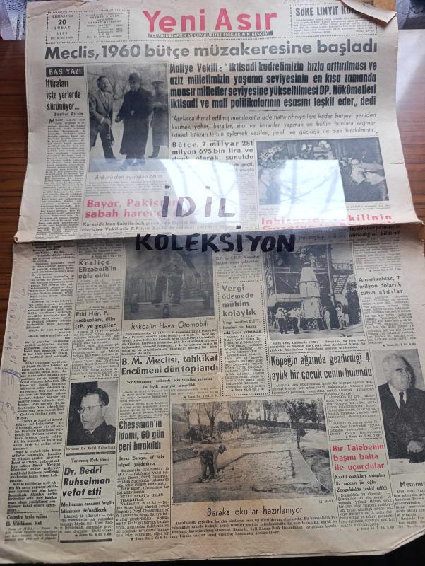 Yeni Asır Gazetesi - Turkish Newspaper - 20 Şubat 1960 - iftiraları işte yerlerde sürünüyor yazan Şevket Bilgin Başmakale - meclis 1963 bütçe müzakeresi'ne başladı - Celal Bayar Pakistan devlet reisinin daveti üzerine bu sabah Pakistan'a hareket etti Fotoğrafı - kraliçe elizabeth'in oğlu oldu - eski Hürriyet Partisi mebusları Demokrat Parti'ye geçtiler - inhisarlar vekili Hadi Hüsman dün saat 22.45'te motorlu trenle İstanbul'a geldi fotoğraf - Amerikalılar 7 milyon dolarlık tütün aldılar - dünyanın bugüne kadar hazırladığı en kudretli suni peyk Lockheed Agena Fotoğrafı - Caryl Chessman'ın idamı 60 gün geri bırakıldı - tanınmış ruh alimi Dr. Bedri Ruhselman vefat etti - yılın 365 günü her çeşit sebze yetiştirilebilecek - Keresteciler cumartesi öğleden sonra tatil yapacaklar - milli ligde bugün İzmir'de büyük şöhretler karşı karşıya - Demirspor Karagümrük maçı - Altay Galatasaray maçı fotoğraflar - Fenerbahçe dün sabah çalıştı - bahsi müşterek çalışmaları - Beşiktaş Göztepe karşısında adlı eser, Kitap > Süreli Yayınlar > Gazeteler > Türkiye > Genel > Günlük kategorisinde İkinci El olarak satıştadır.