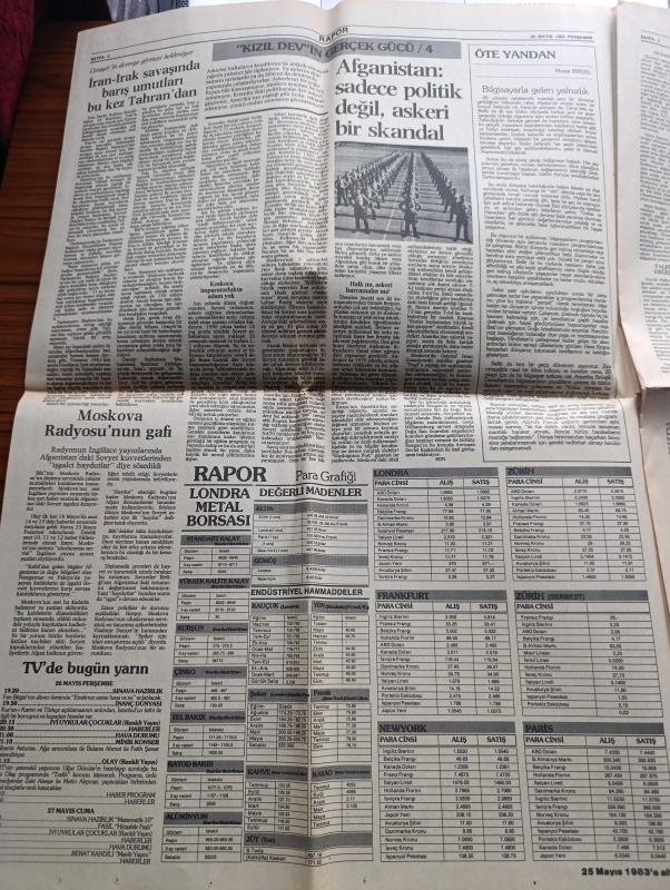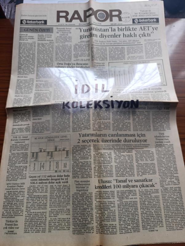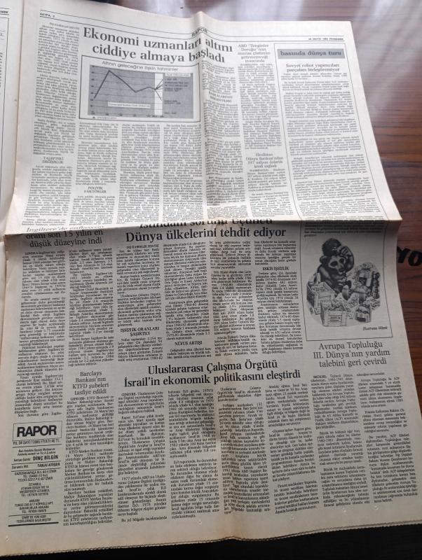 Yeni Asır Rapor Gazetesi - Turkish Newspaper - 26 Mayıs 1983 - Yunanistan ile birlikte AET'ye girelim diyenler haklı çıktı - Fransa'da öğrenciler kültür bakanı Jack Lang'a meydan dayağı attı - Başbakan Bülend Ulusu esnaf ve sanatkar kredileri 100 milyara çıkacak - TOB 38. Genel kurulu cumartesi toplanıyor - hukukçular grevde - ortadoğu'ya ihracatın yabancı güçler tarafından baltalandığı öne sürüldü - Londra Metal borsası - Afganistan sadece politik değil askeri bir skandal - bilgisayarla gelen yalnızlık yazan Murat Birsel - İran Irak Savaşı'nda barış umutları Bu kez Tahran'dan - Uluslararası çalışma örgütü İsrail'in ekonomik politikasını eleştirdi - düşünceler yazan Burhan Özfatura - Yeni kurulan şirketler - iş piyasalardaki son fiyat hareketleri - Alpaslan Beşikçioğlu üzüm ihracatında fon kaldırılırsa stoklar erir - Koza piyasası 10 Haziran'da açılıyor - müteahhitlerimizin en büyük rakibi mevzuat - ABD otomobil piyasası yeni bir bunalımın eşiğinde - altın fiyatları - Güngör Mengi, Dinç Bilgin tarafından kaleme alınmıştır. Yeni Asır Rapor Gazetesi - Turkish Newspaper - 26 Mayıs 1983 - Yunanistan ile birlikte AET'ye girelim diyenler haklı çıktı - Fransa'da öğrenciler kültür bakanı Jack Lang'a meydan dayağı attı - Başbakan Bülend Ulusu esnaf ve sanatkar kredileri 100 milyara çıkacak - TOB 38. Genel kurulu cumartesi toplanıyor - hukukçular grevde - ortadoğu'ya ihracatın yabancı güçler tarafından baltalandığı öne sürüldü - Londra Metal borsası - Afganistan sadece politik değil askeri bir skandal - bilgisayarla gelen yalnızlık yazan Murat Birsel - İran Irak Savaşı'nda barış umutları Bu kez Tahran'dan - Uluslararası çalışma örgütü İsrail'in ekonomik politikasını eleştirdi - düşünceler yazan Burhan Özfatura - Yeni kurulan şirketler - iş piyasalardaki son fiyat hareketleri - Alpaslan Beşikçioğlu üzüm ihracatında fon kaldırılırsa stoklar erir - Koza piyasası 10 Haziran'da açılıyor - müteahhitlerimizin en büyük rakibi mevzuat - ABD otomobil piyasası yeni bir bunalımın eşiğinde - altın fiyatları - Güngör Mengi adlı eser Türkçe dilindedir.
