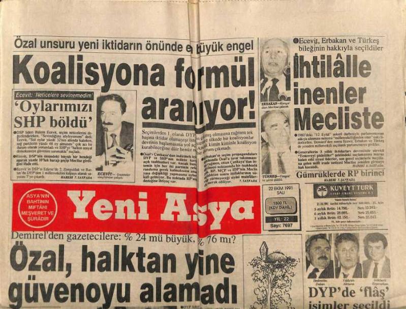 Yeni Asya Gazetesi 22 Ekim 1991 - Koalisyona Formül Aranıyor GZ104320, en son 18 gün önce güncellenmiştir.