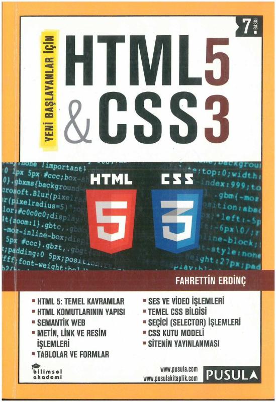 Yeni Başlayanlar için HTML5 & CSS3 [5.Baskı], FAHRETTİN ERDİNÇ tarafından kaleme alınmıştır. Kitap 2019 yılında PUSULA YAYINCILIK tarafından [İSTANBUL] yayınlanmıştır. Satışta olan kitap, yayınevinin 7. baskısıdır. 251 sayfadır. Yeni Başlayanlar için HTML5 & CSS3 [5.Baskı] adlı eser Türkçe dilindedir.