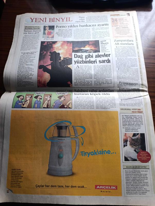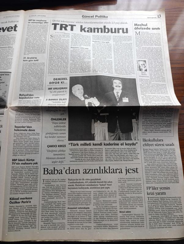 Yeni Bin Yıl Gazetesi - Turkish Newspaper - 24 Aralık 1999 - Dahi çocuk Murat Muratoğlu'nun büyük yalnızlığı fotoğraf - Fenerbahçe teknik direktörü Zeman'a göre futbolcuları inançsız - İstanbul'da fuhuş yaparken yakalanan Türk su kayağı milli takımı sporcusu Elena Ivanova federasyon beni kötü yola düşürdü dedi fotoğraf - Şişli Eski Belediye Başkanı Gülay Aslıtürk Londra'da serbest bırakıldı - Alaattin Çakıcı Fransız vatandaşı gibi - Yunan polisince yakalanan Hasan Heybetli Cennet Vatana döndü - sanal alemde müzik seti - Süleyman Demirel Orhan Gencebay'a şükran plaketi verdi fotoğraf - Avrupa Birliği mi elbette evet - Son 48 saat içinde binlerce Çeçen sivil başkent Grozni'yi terk etti - Louis Vuitton birçok ünlü gibi Alaaddin Çakıcı'nın da tercihi fotoğraf - Hamdi Alkan sahneye ihanet etmedim - bu akşam Beyoğlu'nda etkinlikler - 13. Savaşçı başrolde Antonio Banderas sinemalarda - dövüş kulübü sinemalarda - Ronaldo öldü yaşasın Rivaldo fotoğraf - Fatih Terim'e 10 milyon dolar, Hasan İlhan Esen tarafından kaleme alınmıştır. Yeni Bin Yıl Gazetesi - Turkish Newspaper - 24 Aralık 1999 - Dahi çocuk Murat Muratoğlu'nun büyük yalnızlığı fotoğraf - Fenerbahçe teknik direktörü Zeman'a göre futbolcuları inançsız - İstanbul'da fuhuş yaparken yakalanan Türk su kayağı milli takımı sporcusu Elena Ivanova federasyon beni kötü yola düşürdü dedi fotoğraf - Şişli Eski Belediye Başkanı Gülay Aslıtürk Londra'da serbest bırakıldı - Alaattin Çakıcı Fransız vatandaşı gibi - Yunan polisince yakalanan Hasan Heybetli Cennet Vatana döndü - sanal alemde müzik seti - Süleyman Demirel Orhan Gencebay'a şükran plaketi verdi fotoğraf - Avrupa Birliği mi elbette evet - Son 48 saat içinde binlerce Çeçen sivil başkent Grozni'yi terk etti - Louis Vuitton birçok ünlü gibi Alaaddin Çakıcı'nın da tercihi fotoğraf - Hamdi Alkan sahneye ihanet etmedim - bu akşam Beyoğlu'nda etkinlikler - 13. Savaşçı başrolde Antonio Banderas sinemalarda - dövüş kulübü sinemalarda - Ronaldo öldü yaşasın Rivaldo fotoğraf - Fatih Terim'e 10 milyon dolar adlı eser Türkçe dilindedir.