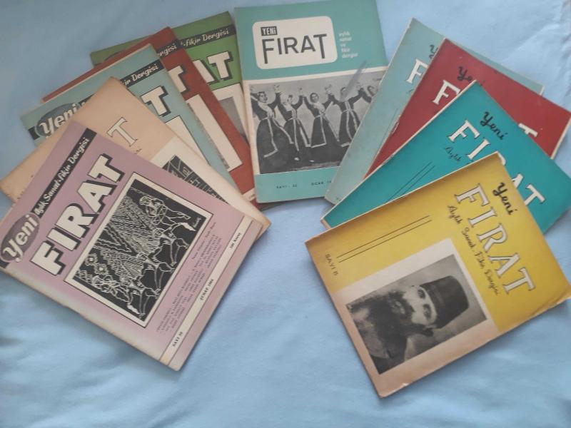 Yeni Fırat Aylık Fikir ve Sanat Dergisi. basım yılı Şubat 1963. (8-11-12-13-16-18-20-23-33-34-35) sayılar. Toplam 11 adet dergi. Her bir dergi 31 sayfadan oluşmaktadır. Toptan verilecektir