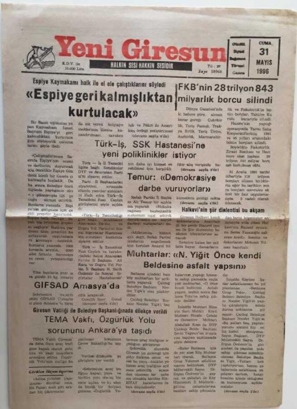Yeni Giresun Gazetesi 31 Mayıs 1996 - TEMA Vakfı , Özgürlük Yolu Sorununu Ankaraya Taşıdı GZ28738, en son 20 gün önce güncellenmiştir.