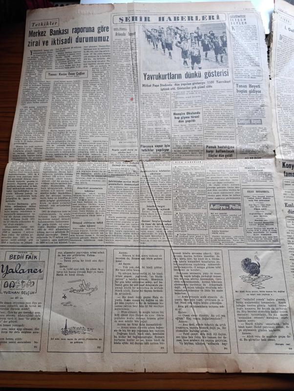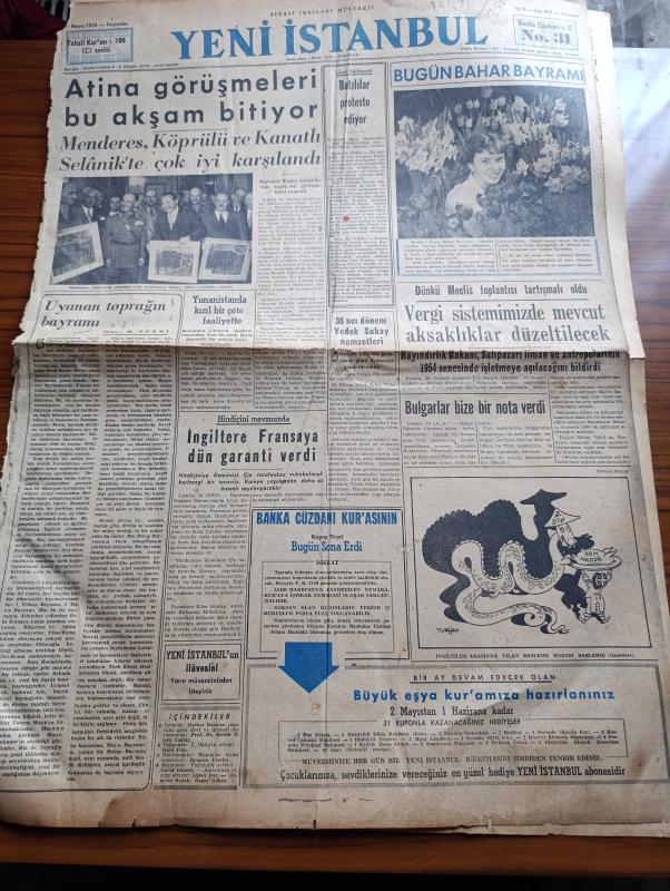 Yeni İstanbul Gazetesi - 1 Mayıs 1952 - Mustafa Nermi - Atina Görüşmeleri Bu Akşam Bitiyor - Adnan Menderes Fuat Köprülü Ve Şükrü Kanatlı Selanik'te Çok İyi Karşılandı - Bugün Bahar Bayramı - Hindiçini Mevzuunda İngiltere Fransa'ya Dün Garanti Verdi - Bulgarlar Bize Bir Nota Verdi - Vergi Sistemimizde Mevcut Aksaklıklar Düzeltilecek - Yalancı Yazan Bedii Faik Resimleyen Turhan Selçuk Yazı Dizisi - Kerim Ömer Çağlar - Yavrukurtların Mithatpaşa Stadında Dünkü Gösterisi - 1 Mayıs Bahar Bayramı Sebebiyle Resmi Daire Ve Okullar Tatil - Selanik'te Büyük Atatürk'ün Evinde - Birleşik Amerika Harp Koleji Talebeleri Türkiye'ye Geliyor - Sanatkar Gülseren Sadak - Burç Yorumu - Bugün Beşiktaş Ve Fenerbahçe Karşılaşıyor - New York'ta Açılan Bir Türk Sergisi - Zündapp Motosikletleri - Gripin - Tempo Matador Kamyonetleri ve Otobüsleri - Mediator Radyo adlı eser, Kitap > Süreli Yayınlar > Gazeteler > Türkiye > Genel > Günlük kategorisinde İkinci El olarak satıştadır.