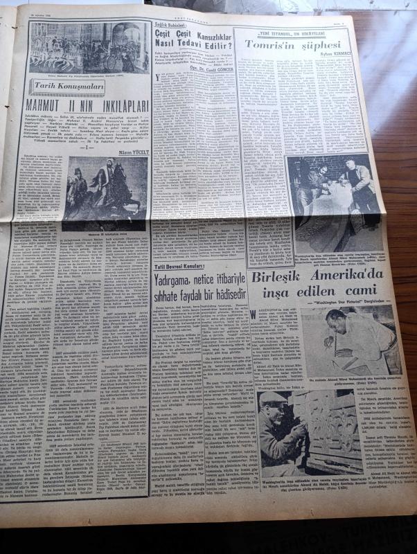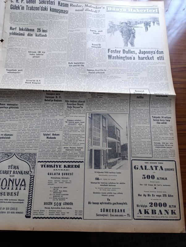 Yeni İstanbul Gazetesi - 10 Ağustos 1953 - Mustafa Nermi - Dün Kore'de 13 Türk Esiri Daha İade Edildi - Dünya Cirit Atma Rekorunu Bud Held Kırdı - Belgrad Radyosu - İran Başbakanı Doktor Musaddık Yanlış Yoldan Dönüyor Mu - Türkiye İçin 20 Milyonluk Ek Kredi - Kasım Gülek CHP'den Kimse Hesap İsteyemez Dedi - Bahadır Dülger Anadolu Ajansından Ayrılıyor Mu - Isparta Hava Alanı Açıldı - Taksim Meydanı'nda Dini Kisve İle Dolaşan Bir Hoca - Döner Ayna Yazan Halide Edip Adıvar Yazı Dizisi - Numan Kıraç - Adliye Sarayının Birinci Kısım İnşaatına Hız Verildi - Harf İnkılabının 25. Yıldönümü Dün Kutlandı - Edirne'de 100 Kişi Kuduz Tedavisi Görüyor - İçişleri Bakanı Ethem Menderes Madende - General Franco'nun Nutku - Dünyanın 2. Büyük Barajı Hindistan'da Yapılıyor - Ankara İstanbul İzmir Radyosu Programı - Hüseyin Avni Şanda - 2. Mahmut'un İnkılapları - Yeni İstanbul'un Hikayeleri Tomris'in Şüphesi Yazan Ayhan Kırmacı - Birleşik Amerika'da İnşa Edilen Cami- Sinemanın En Sevimli Aktörü John Wayne adlı eser, Kitap > Süreli Yayınlar > Gazeteler > Türkiye > Genel > Günlük kategorisinde İkinci El olarak satıştadır.