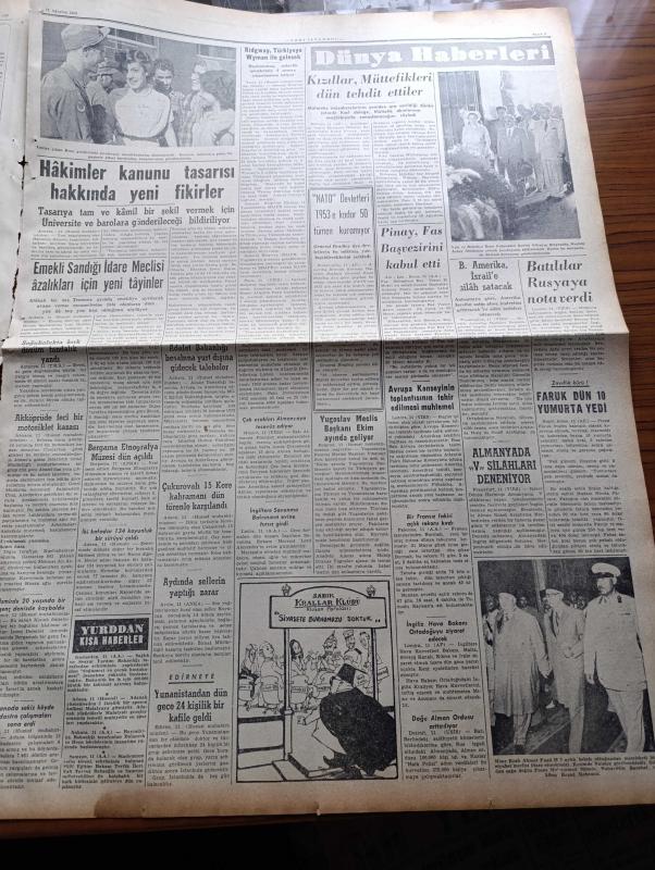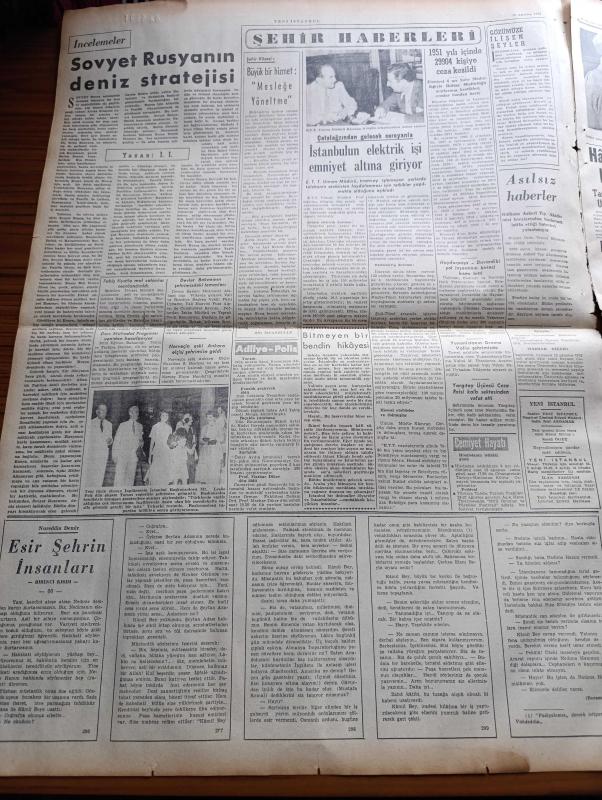 Yeni İstanbul Gazetesi - 12 Ağustos 1952 - Mustafa Nermi - İran Başbakanı Musaddık'a Fevkalade Salahiyetler Tanındı - Ürdün Kralı Tallal Tahtından İndirildi - Arjantin Cumhurbaşkanı'nın Eşi Eva Peron'un Cenaze Töreni - İngiltere Dışişleri Bakanı Eden Churchill'in Yegeniyle Evleniyor - Çanakkale Şehitleri Dün Anıldı - Etibank Garp Linyitleri Soma İşletmesi Dün Açıldı - Esir Şehrin İnsanları Yazan Nureddin Demir (Kemal Tahir) Yazı Dizisi - Hakimler Kanunu Tasarısı Hakkında Yeni Fikirler - Bergama Etnografya Müzesi Dün Açıldı - Birleşik Amerika İsrail'e Silah Satacak - İsraile Satılan Kepekler Gemiye Yükleniyor - Dünya Ticaret Rekoru 1951'de Yeni Bir Rekor Kırdı - Geiger Sayıcısı İle Bir Katil Nasıl Bulundu - Penny Ridgway Paris'in En Şık Kadını Olmaya Namzet - İngiltere'nin En Meşhur Karikatüristi Giles - Kral Faruk Tahttan Nasıl Düştü - Ronson Dünyanın En İyi Çakmağı - James Motosikletleri - Jawa Motosikletleri - Gripin, Habib Edib Törehan tarafından kaleme alınmıştır. Yeni İstanbul Gazetesi - 12 Ağustos 1952 - Mustafa Nermi - İran Başbakanı Musaddık'a Fevkalade Salahiyetler Tanındı - Ürdün Kralı Tallal Tahtından İndirildi - Arjantin Cumhurbaşkanı'nın Eşi Eva Peron'un Cenaze Töreni - İngiltere Dışişleri Bakanı Eden Churchill'in Yegeniyle Evleniyor - Çanakkale Şehitleri Dün Anıldı - Etibank Garp Linyitleri Soma İşletmesi Dün Açıldı - Esir Şehrin İnsanları Yazan Nureddin Demir (Kemal Tahir) Yazı Dizisi - Hakimler Kanunu Tasarısı Hakkında Yeni Fikirler - Bergama Etnografya Müzesi Dün Açıldı - Birleşik Amerika İsrail'e Silah Satacak - İsraile Satılan Kepekler Gemiye Yükleniyor - Dünya Ticaret Rekoru 1951'de Yeni Bir Rekor Kırdı - Geiger Sayıcısı İle Bir Katil Nasıl Bulundu - Penny Ridgway Paris'in En Şık Kadını Olmaya Namzet - İngiltere'nin En Meşhur Karikatüristi Giles - Kral Faruk Tahttan Nasıl Düştü - Ronson Dünyanın En İyi Çakmağı - James Motosikletleri - Jawa Motosikletleri - Gripin adlı eser Türkçe dilindedir.