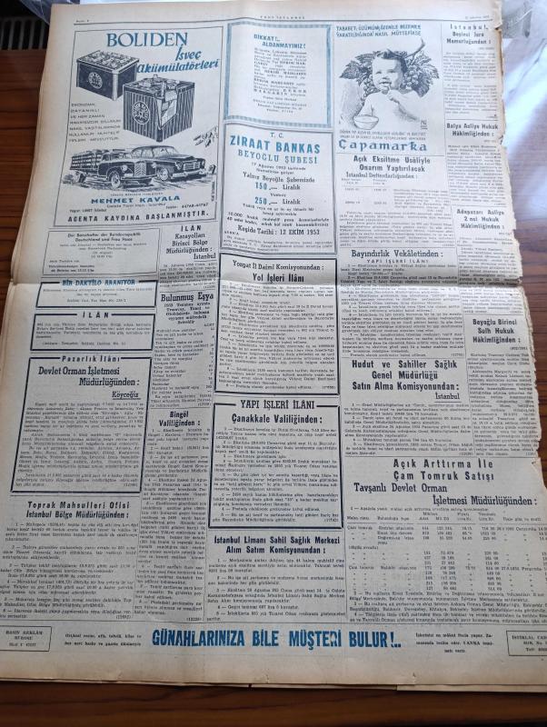 Yeni İstanbul Gazetesi - 12 Ağustos 1953 - Mustafa Nermi - Kore'de Hürriyet'e Kavuşanların Sevinci - Eski Osmanlı Prenslerinden Ömer Faruk Zavallısının Verdiği Beyanat - Dumlupınar Davası Meraklı Bir Safhada - Çanakkale Zaferinin Yıldönümü - Bahadır Dülger Anadolu Ajansından Uzaklaştırıldı - Türkiye Güzellik Kraliçesi Belgin Doruk - Döner Ayna Yazan Halide Edip Adıvar Yazı Dizisi - Haliçte Korsanlar Bir Bekçiyi Yaraladı - Burak Reis'in Kahramanca Şehadeti - Fransa'daki Greve Karşı Hükümet Çare Arıyor - Moskova Radyosu İran'ı Amerika Aleyhine Tahrik Ediyor - İsveç'te Atom Araştırmaları - Anadolu Abideleri Yazan Aziz Ogan Yazı Dizisi - Ankara İstanbul İzmir Radyosu Programı Mecliste - 2. Mahmut'un İnkılapları - Yeni İstanbul'un Hikayeleri Büyük Dava Yazan Mahmut Kuru - Mayalara Dair Bugün Ne Biliniyor - Mısır Eski Kraliçesi Feride'nin Hayatı - İslam Memleketleri Yazan Fikret Adil Yazı Dizisi - Yeni Ceza Kanununda Suçlu Doktorlar - Boliden İsveç Akümülatörleri - Çapamarka - Ziraat Bankası adlı eser, Kitap > Süreli Yayınlar > Gazeteler > Türkiye > Genel > Günlük kategorisinde İkinci El olarak satıştadır.