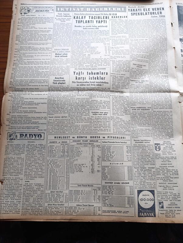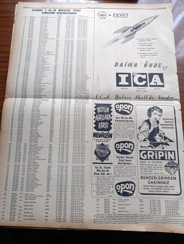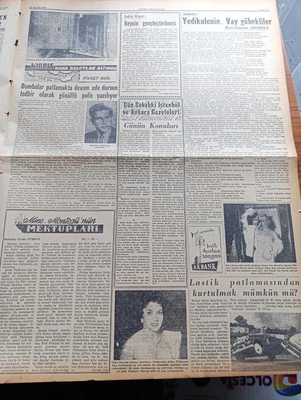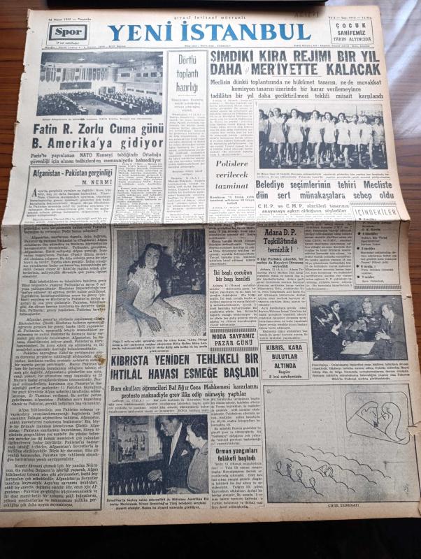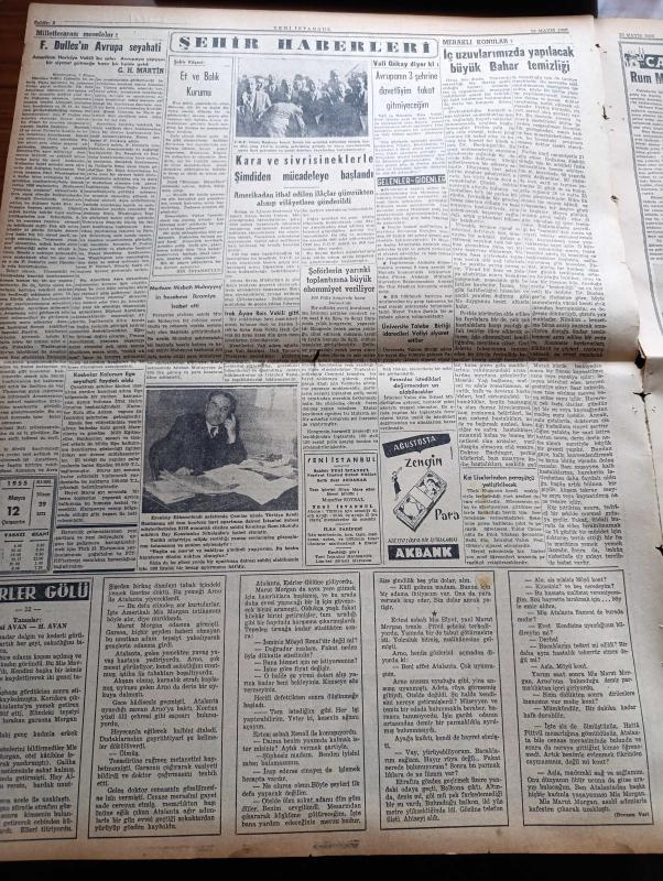 Yeni İstanbul Gazetesi - 12 Mayıs 1955 - Fatin Rüştü Zorlu Cuma Günü Birleşik Amerika'ya Gidiyor - Amerikan Başkanı Eisenhower - Mustafa Nermi - Şimdiki Kira Rejimi Bir Yıl Daha Meriyette Kalacak - Kıbrıs'ta Yeniden Tehlikeli İhtilal Havası Esmeğe Başladı - İki Başlı Çocuğun Bir Başı Kesildi - Belediye Seçimlerinin Tehiri Mecliste Sert Münakaşalara Sebep Oldu - Et ve Balık Kurumu - İstanbul Vali Ve Belediye Reisi Fahrettin Kerim Gökay - Rum Mehmetpaşa Camii - Sait Faik Abasıyanık'ın Hatırası Anıldı - Varşova Konferansında Dünkü İlk Toplantı - Dünyanın En Korkunç Hastalığı Sıtma - Saadet Bekçisi Yazan Zeliha Harun Yazı Dizisi - Kıbrıs Kara Bulutlar Altında Yazan Fikret Adil Yazı Dizisi - Son Yolların Cinsi Cazibe Kraliçesi Mamie Van Doren - Münir Süleyman Çapanoğlu - 19 Mayıs Bayramına Hazırlık - Genç Piyanist Füruzan Saydam - Tokalon - Ankara'da Lig Maçları - Akdeniz Olimpiyatları - Gripin - Nevrozin adlı eser, Kitap > Süreli Yayınlar > Gazeteler > Türkiye > Genel > Günlük kategorisinde İkinci El olarak satıştadır.