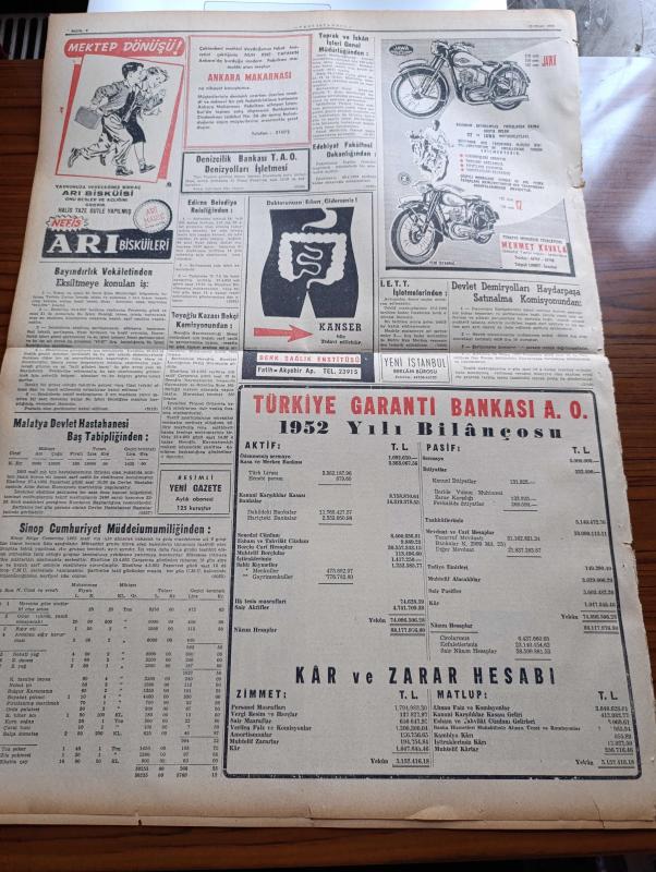 Yeni İstanbul Gazetesi - 13 Nisan 1953 - Sovyet Rusya İngiltere İle Anlaşmak İstiyor - CHP Genel Sekreteri Kasım Gülek'in Mersin'deki Ağır İthamları - Amerika Yakınşarka Yardımlar Arttırılacak - Anadolu Ajansı Taşlandı - Kore'de Esir Mübadelesi 20 Nisan Günü Başlıyor - Ecnebi Mektepleri - İstanbulumuzun Fetih Yıldönümü İle İlgili Kongre - Devrim Ocaklarının Mühim Bir Kararı - Mustafa Nermi - Küçük İnsanlar Yazan Faik Baysal Yazı Dizisi - Fenerbahçe'de Yeni Açılan Kulüplere 104 Tekne Hediye Edildi - Komünistler Ellerindeki Esirlere Daimi Baskı Yapıyor - Dumlupınar Denizaltısı Şehitleri İçin Mevlit - Zenci Kız Kansas Şehri Belediye Başkanlığına Seçildi - Azra Bora - Hüseyin Avni Şanda - Ankara İstanbul Radyosu Programı - Büyük Röportaj Serisi İslam Memleketleri Yazan Fikret Adil Yazı Dizisi - Çanakkale Kupasında Vefa Beşiktaş'ı 3 2 Mağlup Etti - Galatasaray Ankaragücü'nü 3 2 Yendi - Jawa Motosikletleri - Arı Bisküvileri adlı eser, Kitap > Süreli Yayınlar > Gazeteler > Türkiye > Genel > Günlük kategorisinde İkinci El olarak satıştadır.