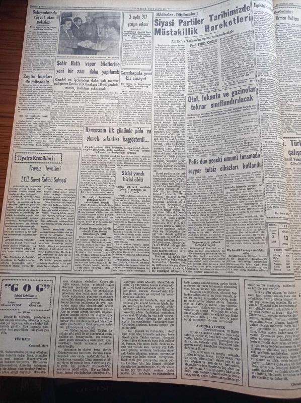 Yeni İstanbul Gazetesi - 13 Nisan 1956 - İsmet İnönü Başvekil Adnan Menderes'e Çok Sert Bir Cevap Verdi - Celal Bayar ve Adnan Menderes'in Dün Gezdiği Tesisler - Refik Halid Karay Yeni İstanbul'da - Mısır Fedaileri Telaviv'de Bir Mektebe Baskın Yaptı - Grace Kelly Dün Monaco'ya Vardı - Türk Hava Yolları İdare Meclisi Reisi Rıza Çerçel İstifa Etti - En Güzel Mevlid Bestesine 10 Bin Lira Vereceğiz - İstanbul Teknik Üniversitesi Sanat Kulübü Sahnesi - Siyasi Partiler Tarihimizde Müstakillik Hareketleri - 5. Türk Tarih Kurumu Çalışmalarına Başladı - Mimar Sinan'ın Heykeli Dün Merasimle Açıldı - Milano Fuarı Dün Resmen Açıldı - Radyo - Macarlarla İlk Güreş Yarın Akşam Yapılıyor - Muhittin Bulgurlu Fenerbahçe'den Çıkarıldı - Vasco Do Gama'nın Ankara Maçları - Brezilya Milli Maçı İçin Yapılan Hazırlıklar - Milli Futbol Takımı Trieste Sahasında İtalyanlarla Birlikte adlı eser, Kitap > Süreli Yayınlar > Gazeteler kategorisinde İkinci El olarak satıştadır.