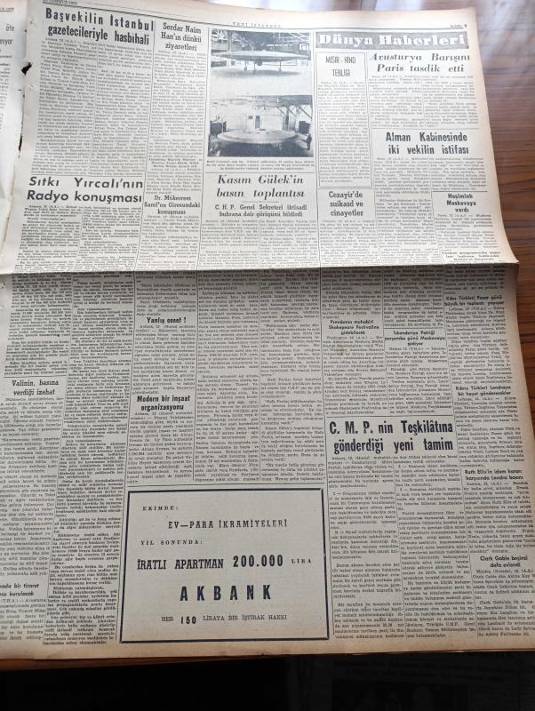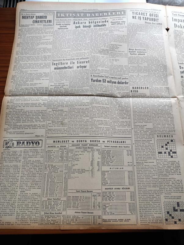 Yeni İstanbul Gazetesi - 13 Temmuz 1955 - Mustafa Nermi - Makarios Kısmi Muhtariyete Razı Olunmayacağını Söyledi - Moskova Din Adamlarını Seferber Etti - Adnan Menderes İktisadi Plansızlık İddiaları Asılsızdır Diyor - İran Şahı Rusya'ya Çağrıldı - Casus Çolakof Konsolos İle Görüştürüldü - Akdeniz Oyunları - İstanbul Valisi Fahreddin Kerim Gökay Kimsenin Gözünün Yaşına Bakmayacağız - Cumhuriyetçi Millet Partisi'nin Dikkate Değer Bir Tamimi - Doçent Abdülkadir Karahan - Huzur Hasreti Yazan Mehmet Davaz Yazı Dizisi - Beşinci Kol'un Barışta'ki Faaliyeti - Şişli Camiinden İki Halı Çalındı - Sıtkı Yırcalı'nın Radyo Konuşması - Serdar Naim Han'ın Dünkü Ziyaretleri - Clark Gable Beşinci Defa Evlendi - İstanbul Ankara İzmir Radyosu Programı - Mehtap Şarkısı Cinayetleri Yazan Francis Didelot Yazı Dizisi - İmparatorluk Devrinde Dokuma Sanayimiz Yazan Mustafa Cezar Yazı Dizisi - Eyüp Çocuk Barındırma Yurdunda Gördüklerimiz - Avrupa At Yarışlarında Milyonlar Dönüyor - Metin Oktay'ın Durumu adlı eser, Kitap > Süreli Yayınlar > Gazeteler > Türkiye > Genel > Günlük kategorisinde İkinci El olarak satıştadır.