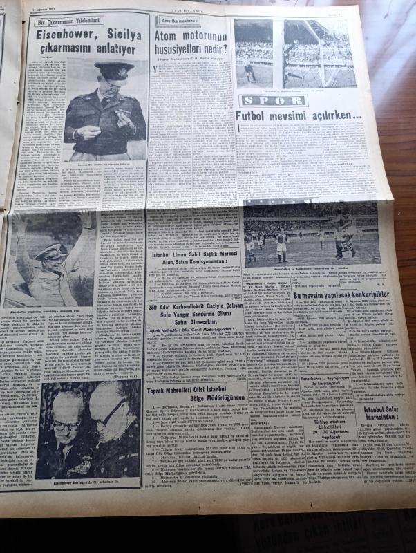Yeni İstanbul Gazetesi - 16 Ağustos 1953 - Mustafa Nermi - Kore Konferansına Katılacak Devletler - Diyanet İşleri Başkanı Eyüp Sabri Hayırlıoğlu'na Mecburi İzin Verildi - İstanbul Atletizm Birincilikleri - Boksör Garbis Zaharyan Dün Gece Taki Ziyaris'i Mağlup Etti - Savcı Yardımcılarına Verilen Yeni Vazife - Sümerbank Mamülleri Ucuzlatıldı - Döner Ayna Yazan Halide Edip Adıvar Yazı Dizisi - İstiklal Caddesi Asfaltlanacak - Profesör Doktor Kerim Ömer Çağlar - Hasan Polatkan - İran Sovyet Müşterek Komisyonunun Toplantıları - Panayakapulo Haci Evinin Açılış Töreni Yapılacak - Binbir Gece Masalları Dört Ayaklı Kadı Çeviren Reşad Nuri Darago Yazı Dizisi - Ankara İstanbul İzmir Radyosu Programı - Batı Almanya Ve İzmir Fuarı - Pazar Konuşmaları Yazan Baydar Derler - Christian Dior - Dünyadan Meraklı Resimler - Eisenhower Sicilya Çıkarmasını Anlatıyor - Atom Motorunun Hususiyetleri Nedir - Futbol Mevsimi Açılırken - Ziraat Bankası - Çapamarka - Tissot Saatleri - Rekor İdrofil Pamuk adlı eser, Kitap > Süreli Yayınlar > Gazeteler > Türkiye > Genel > Günlük kategorisinde İkinci El olarak satıştadır.