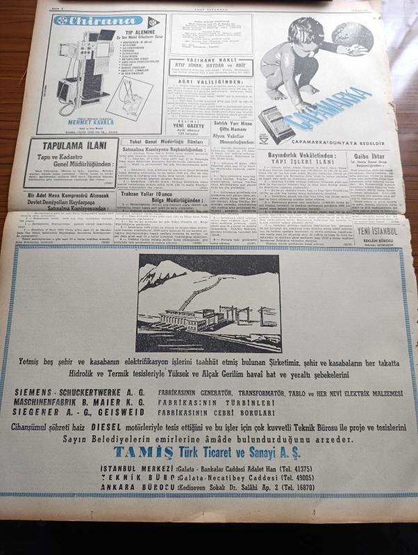 Yeni İstanbul Gazetesi - 16 Şubat 1953 - Ahmet Emin Yalman'a Yapılan Suikast -Mustafa Nermi - Atom Casusları Lehine Nümayiş - Ankara Büyük Çapta Siyasi Faaliyetlere Sahne Oluyor - Demokrat Parti Hükümetinin İlk Maliye Bakanı Halil Ayan Vefat Etti - Büyük Millet Meclisi'nde Bütçe Müzakerelerine Bugün Başlanıyor - Barem Kanunu Tasarısı - Fenerbahçe Vefa İle Berabere - Büyük Kardeşim Atatürk Anlatan Makbule Atadan Yazı Dizisi - Küçük İnsanlar Yazan Faik Baysal Yazı Dizisi - NATO Sulh Kervanı Perşembe Günü Açılıyor - Coğrafya Haftası Bugün Başlıyor - Hikaye Postahane Yazan Behice Yücedağ - Viyana Radyosu Programı - İstanbul Belediye Şehir Tiyatroları Programı - Lanetli Mahalle Yazan Mehmet Davaz Yazı Dizisi - Bölge Kır Koşusu Yapılıyor - Bursa Askerî Lisesi'nin Yıldönümü Kutlandı - Yahudi Aleyhtarı Kampanyaya Karşı Harekete Geçmek Lazım - Duo İsimli Hikaye Tiyatro Oyunu Oldu - Beşiktaş Beyoğluspor'u Mağlup Etti - Hollywood'da Bir Film Nasıl Çevriliyor - Çapamarka, Habib Edib Törehan tarafından kaleme alınmıştır. Yeni İstanbul Gazetesi - 16 Şubat 1953 - Ahmet Emin Yalman'a Yapılan Suikast -Mustafa Nermi - Atom Casusları Lehine Nümayiş - Ankara Büyük Çapta Siyasi Faaliyetlere Sahne Oluyor - Demokrat Parti Hükümetinin İlk Maliye Bakanı Halil Ayan Vefat Etti - Büyük Millet Meclisi'nde Bütçe Müzakerelerine Bugün Başlanıyor - Barem Kanunu Tasarısı - Fenerbahçe Vefa İle Berabere - Büyük Kardeşim Atatürk Anlatan Makbule Atadan Yazı Dizisi - Küçük İnsanlar Yazan Faik Baysal Yazı Dizisi - NATO Sulh Kervanı Perşembe Günü Açılıyor - Coğrafya Haftası Bugün Başlıyor - Hikaye Postahane Yazan Behice Yücedağ - Viyana Radyosu Programı - İstanbul Belediye Şehir Tiyatroları Programı - Lanetli Mahalle Yazan Mehmet Davaz Yazı Dizisi - Bölge Kır Koşusu Yapılıyor - Bursa Askerî Lisesi'nin Yıldönümü Kutlandı - Yahudi Aleyhtarı Kampanyaya Karşı Harekete Geçmek Lazım - Duo İsimli Hikaye Tiyatro Oyunu Oldu - Beşiktaş Beyoğluspor'u Mağlup Etti - Hollywood'da Bir Film Nasıl Çevriliyor - Çapamarka adlı eser Türkçe dilindedir.