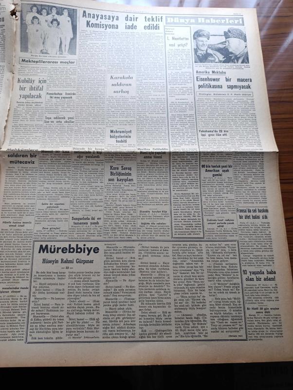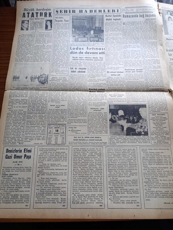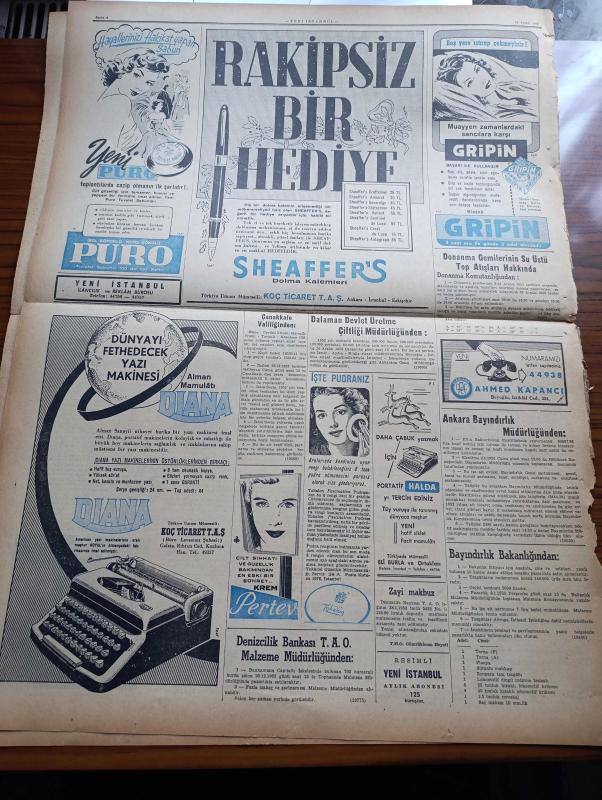 Yeni İstanbul Gazetesi - 18 Aralık 1952 - Mürebbiye Yazan Hüseyin Rahmi Gürpınar Yazı Dizisi - Amerika'nın Yeni Cumhurbaşkanı Eisenhower Mac Arthur'le Dün Görüştü - Müslüman Kongresi - Anayasaya Dair Teklif Komisyona İade Edildi - Daha Beyaz Ve Lezzetli Ekmek - Süper Mürşid Necip Fazıl Kısakürek Yeniden Bir Mahkumiyete Uğradı - Bulgaristan'dan Gelen Mayınlar - Büyük Kardeşim Atatürk Anlatan Makbule Atadan Yazı Dizisi - Mediha Berkes - Denizlerin Efesi Gazi Umur Paşa Yazan Tevfik İnci Yazı Dizisi - Fenerbahçe İzmir'de İki Maç Yapacak - Beyoğlu Kız Lisesi - Mevlana Celaleddin Rumi İçin Yapılan Anma Töreni - Ürdün'de İsrail Radyosu Umumi Yerlerde Yasak Edildi - Modern Noel Baba - Şevket Demiral - Zekai Komşuoğlu - Tiyatro Kronikleri - Metin Bara - Ecnebi Karikatürü - Diana Yazı Makinesi - Puro Tuvalet Sabunları - Sheaffer's Dolma Kalemleri - Gripin - Pertev Krem adlı eser, Kitap > Süreli Yayınlar > Gazeteler > Türkiye > Genel > Günlük kategorisinde İkinci El olarak satıştadır.