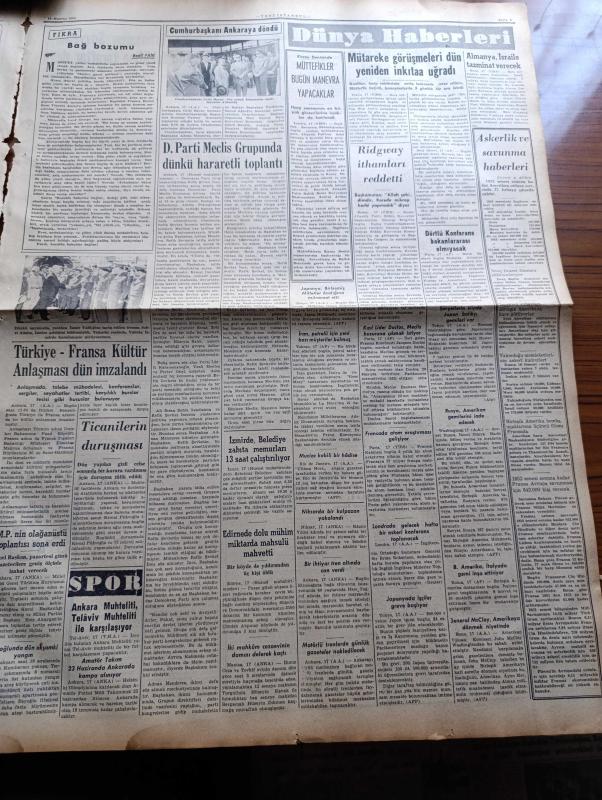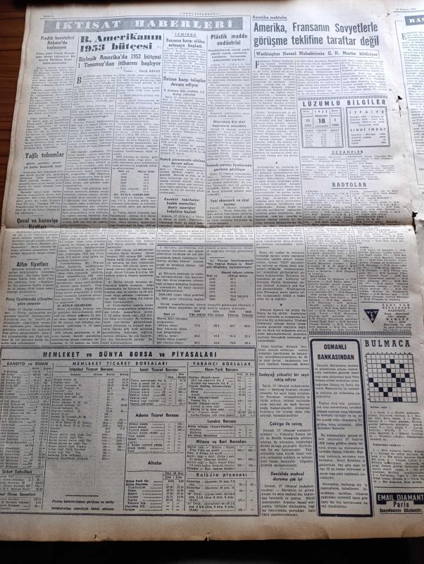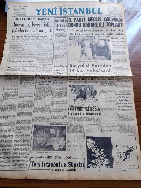 Yeni İstanbul Gazetesi - 18 Haziran 1952 - Mustafa Nermi - Esir Şehrin İnsanları Yazan Nureddin Demir (Kemal Tahir) Yazı Dizisi - Rusya'nın İsveç'i İstila Planları Meydana Çıktı - Kral Paul'ün Celal Bayar'a Bir Mesajı - Sosyalist Partiden 14 Kişi Yakalandı - Esat Adil Müstecabioğlu - Yusuf Ahıskalı - Vahit Kıvılcım - Veli Dolu - Halk Partisinin Zimmetinde Bulunan Paralar - Limanlar Ve Silolar Kredisi - Şehir Tiyatrosunun Yeni Rejisörü Max Meinecke - Türkiye Fransa Kültür Anlaşması Dün İmzalandı - Rusya Amerikan Gemilerini İade Edecek - Ticanilerin Duruşması - Mahmutpaşa Çarşısı Nerede Başlar Ve Nerede Son Bulur - Birleşik Amerika'nın 1953 Bütçesi - Namık Kemal'in Magosa'sı - Kadın Hapishanesinde Doğan Çocuklar - Bulmaca - Tiyatro Eserleri Ve Mektep Çocukları - Fendt Dieselross Traktörleri - Meşhur Oliver Yazı Makineleri - Çapamarka - Aga Radyo - Gripin - Pilli Luxor Radyo - Refik Şevket İnce İstifasını Geri Aldı adlı eser, Kitap > Süreli Yayınlar > Gazeteler > Türkiye > Genel > Günlük kategorisinde İkinci El olarak satıştadır.