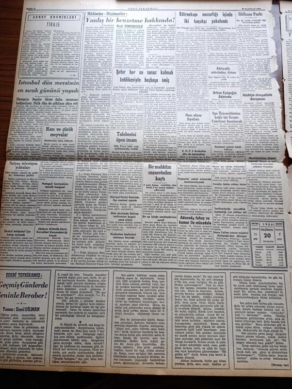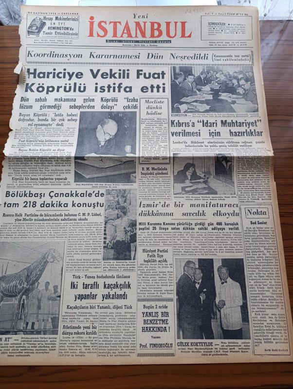 Yeni İstanbul Gazetesi - 20 Haziran 1956 - Hariciye Vekili Fuat Köprülü İstifa Etti - Milli Korunma Kanunu - Osman Bölükbaşı Çanakkale'de Tam 218 Dakika Konuştu - Kıbrıs'a İdari Muhtariyet Verilmesi İçin Hazırlıklar - Refik Halid Karay - Talebesini Öpen İmam - Sanat Kronikleri - Tanzimat Müzesi Tanzim Ediliyor - Mareşal Tito Dün Moskova'da İktisadi Mevzularda Anlaşmaya Varamadık - Ava Gardner'den Ayrıldıktan Sonra Frank Sinatra'nın Şöhreti Arttı - Büyük Atatürk Behçet Kemal'i Çağırtmıştı - Erzurum Üniversitesi Proje Müsabakaları - Manisa'da Kiraz Bayramı Yapıldı - Sinemalar - Müzeler - Cumhuriyet Devrimizin İlk Hava Harp Şehidi Muzaffer Erdönmez - Latin Kupası Maçları Haftaya Başlıyor - Adana Milli Mensucat Takımı Almanya'da İki Galibiyet Kazandı - Real Madrid Mağlup Oldu - Beykoz İstanbulspor Maçı - Kopenhag Turnuvası adlı eser, Kitap > Süreli Yayınlar > Gazeteler > Türkiye > Genel > Günlük kategorisinde İkinci El olarak satıştadır.