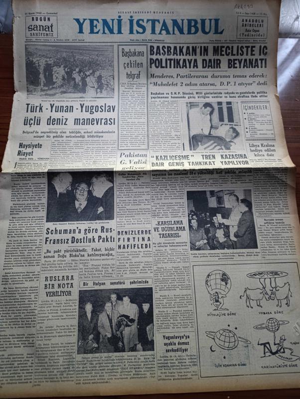 Yeni İstanbul Gazetesi - 21 Kasım 1953 - Haysiyete Riayet Yazan Habib Edib Törehan Köşe Yazısı - Türk Yunan Yugoslav Üçlü Deniz Manevrası - Başbakanlık Adnan Menderes'e Çekilen Telgraf - Schuman'a Göre Fransız Dostlukları Paktı - Kazlıçeşme Tren Kazasına Dair Geniş Tahkikat Yapılıyor - Jenny Yazan Thedore Dreiser Yazı Dizisi - Altın Fiyatları Niçin Yükseliyor - Yabancı Gözüyle İle Türkiye'de Ekonomisi - Sanatta Zamanın Hükmü Yazan Profesör Vehbi Eralp - Orhan Veli'nin Şiir Anlayışı Yazan Melih Cevdet Anday - Shakespeare Ve Sinema - Errol Flynn'ın Meçhul Tarafları - Anadolu Abideleri Yazan Aziz Ogan Yazı Dizisi - Gripin - Krem Pertev - Rekor Pamuk - Vita Yağ adlı eser, Kitap > Süreli Yayınlar > Gazeteler > Türkiye > Genel > Günlük kategorisinde İkinci El olarak satıştadır.