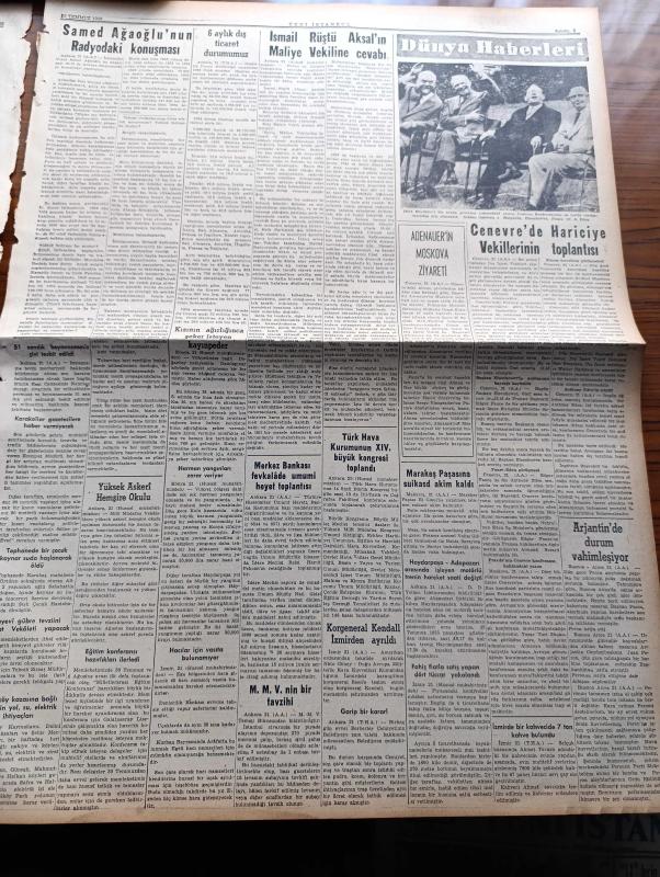 Yeni İstanbul Gazetesi - 22 Temmuz 1955 - Mustafa Nermi - Eisenhower'in Rusya'ya Hayret Uyandıran Teklifi - Bakırköy'de Askeri Cephanelik İnfilak Etti - 11'lere Dahil Olan Ekrem Alican Teklifi Geri Almayacağız Dedi - İsmail Rüştü Aksal Hasan Polatkan'a Cevap Verdi - Kasım Gülek Dün Sorguya Çekildi - Şah Celal Bayar'ı İran'a Davet Etti - CHP Genel Başkanı İsmet İnönü - Huzur Hasreti Yazan Mehmet Davaz Yazı Dizisi - Samed Ağaoğlu'nun Radyodaki Konuşması - Denizcilik Bankası 9 Yeni Gemi Siparişi Verdi - Yüksek Askeri Hemşire Okulu - Ankara İstanbul İzmir Radyosu Programı - Mehtap Şarkısı Cinayetleri Yazan Francis Didelot Yazı Dizisi - Milletlerarası Kalay Konferansı Müzakereleri - Şair Eşrefin Mısır'a Götürdüğü Koçan - Viyana Opera Festivali - Tekerlekli Saray - Çocuk Sayfası - Barselona'da 1500 Metrede Ekrem Koçak Birinci Oldu - Mehmet Ali Has Kardeşi Şeref'i Yanına Alarak Fenerbahçe'ye Döndü - Galatasaray'ın Fenerbahçe'ye Vereceği Kupa - Yunan Güzeli Sonia Fenerbahçe'yi Seviyor adlı eser, Kitap > Süreli Yayınlar > Gazeteler > Türkiye > Genel > Günlük kategorisinde İkinci El olarak satıştadır.