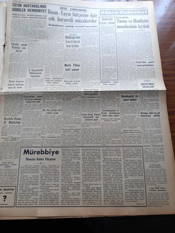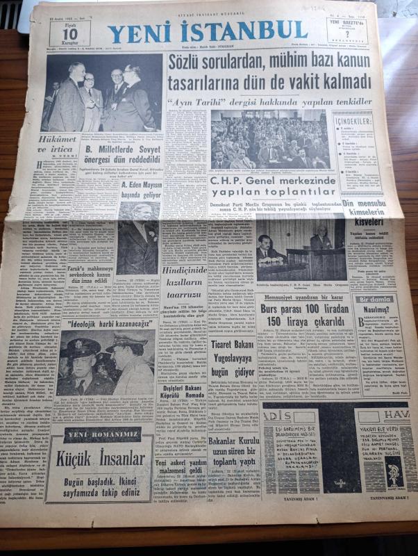 Yeni İstanbul Gazetesi - 23 Aralık 1952 - Mustafa Nermi - Mürebbiye Yazan Hüseyin Rahmi Gürpınar Yazı Dizisi - Birleşmiş Milletler'de Sovyet Önergesi Dün Reddedildi - İngiliz Dışbakanı Anthony Eden Mayıs'ın Başında Geliyor - Amerikan Başkanı Eisenhower Komünizme Karşı İdeoloji Harbi Kazanacağız - Ayın Tarihi Dergisi Hakkında Yapılan Tenkidler - Dışişleri Bakanı Fuat Köprülü Roma'da - Küçük İnsanlar Yazan Faik Baysal Yazı Dizisi - Büyük Kardeşim Atatürk Anlatan Makbule Atadan Yazı Dizisi - Laiklik Haftası Merasimle Başladı - Nurettin Şazi Kösemihal - Bibliyografya Enstitüsü Kuruldu - İnkılap Şehidi Kubilay İçin İhtifal - Churchill'in Hayatı Filme Alınacak - Kanunlara Küfreden Bir Sarhoş Yakalandı - Röportaj Müsabakası - Nihat Doğangüneş - Etibank Tesislerini Genişletiyor - İsviçre Piyasasında Kuru Meyvalarımız - Son Bizans İmparatoru Constantin'in Ölümü - Müzikle Tedavi Ne Gibi Neticeler Verebilir - Bir Genç Kızı Diri Diri Gömdüler - Tissot Saatleri - Ronson Çakmak - Gripin adlı eser, Kitap > Süreli Yayınlar > Gazeteler > Türkiye > Genel > Günlük kategorisinde İkinci El olarak satıştadır.