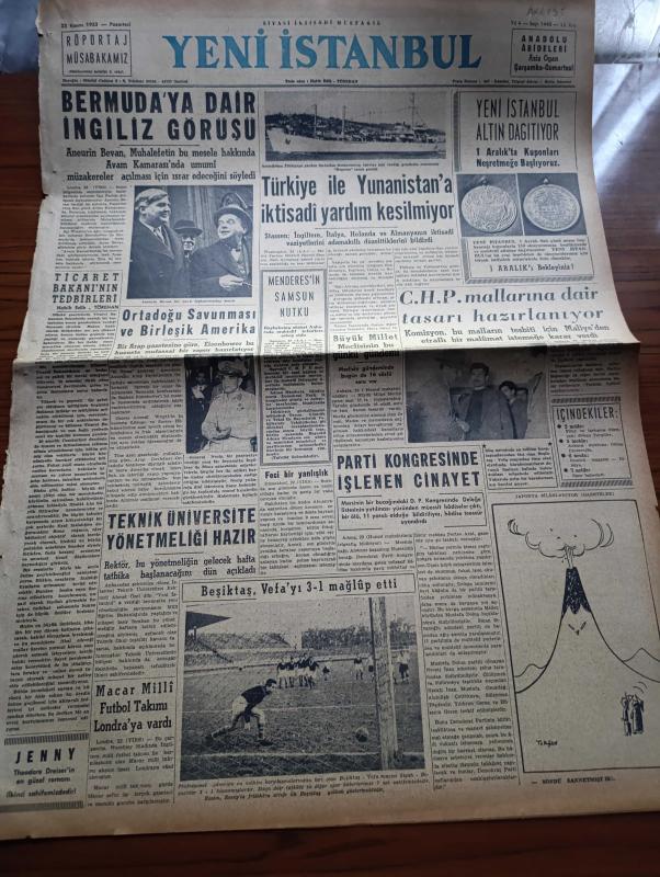 Yeni İstanbul Gazetesi - 23 Kasım 1953 - Ticaret Bakanı'nın Tedbirleri Yazan Habib Edib Törehan Köşe Yazısı - Bermuda'ya Dair İngiliz Görüşü - Ortadoğu Savunması Ve Birleşik Amerika - Teknik Üniversite Yönetmeliği Hazır - Beşiktaş Vefa'yı 3 1 Mağlup Etti - Türkiye İle Yunanistan'a İktisadi Yardım Kesilmiyor - CHP Mallarına Dair Tasarı Hazırlanıyor - Atatürk Köşesi - Jenny Yazan Thedore Dreiser Yazı Dizisi - Yugoslavya'ya Karşı Çıkacak Türkiye Eskrim Milli Takımı - 48 İranlı'yı Şehir Dışı Ediyoruz - Siirt'te Botan Barajının Temeli Dün Törenle Atıldı - Mısır Reisicumhuru General Necip Dedi Ki Süveyş Davasında Mısır Ordusuna Başvurulacak - Mareşal Tito Reyini Kullanacak - Almanya Yunanistan'a 50 Milyon Dolarlık Kredi Açıyor - Evliya Çelebi'nin 17. Yüzyıl Ortalarında Kafkasya Seyahati Yazan Mirza Bala - Kızıl Kraliçe Yazan Jacques Renand Yazı Dizisi - Marilyn Monroe Niçin Seviliyor - Hollywood'un Yaramaz Erkekleri Yaşlanmaktan Korkuyorlar - Kirk Douglas - Güzellik Kraliçeleri Filmleri, Habib Edib Törehan tarafından kaleme alınmıştır. Yeni İstanbul Gazetesi - 23 Kasım 1953 - Ticaret Bakanı'nın Tedbirleri Yazan Habib Edib Törehan Köşe Yazısı - Bermuda'ya Dair İngiliz Görüşü - Ortadoğu Savunması Ve Birleşik Amerika - Teknik Üniversite Yönetmeliği Hazır - Beşiktaş Vefa'yı 3 1 Mağlup Etti - Türkiye İle Yunanistan'a İktisadi Yardım Kesilmiyor - CHP Mallarına Dair Tasarı Hazırlanıyor - Atatürk Köşesi - Jenny Yazan Thedore Dreiser Yazı Dizisi - Yugoslavya'ya Karşı Çıkacak Türkiye Eskrim Milli Takımı - 48 İranlı'yı Şehir Dışı Ediyoruz - Siirt'te Botan Barajının Temeli Dün Törenle Atıldı - Mısır Reisicumhuru General Necip Dedi Ki Süveyş Davasında Mısır Ordusuna Başvurulacak - Mareşal Tito Reyini Kullanacak - Almanya Yunanistan'a 50 Milyon Dolarlık Kredi Açıyor - Evliya Çelebi'nin 17. Yüzyıl Ortalarında Kafkasya Seyahati Yazan Mirza Bala - Kızıl Kraliçe Yazan Jacques Renand Yazı Dizisi - Marilyn Monroe Niçin Seviliyor - Hollywood'un Yaramaz Erkekleri Yaşlanmaktan Korkuyorlar - Kirk Douglas - Güzellik Kraliçeleri Filmleri adlı eser Türkçe dilindedir.