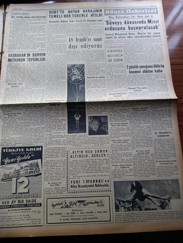 Yeni İstanbul Gazetesi - 23 Kasım 1953 - Ticaret Bakanı'nın Tedbirleri Yazan Habib Edib Törehan Köşe Yazısı - Bermuda'ya Dair İngiliz Görüşü - Ortadoğu Savunması Ve Birleşik Amerika - Teknik Üniversite Yönetmeliği Hazır - Beşiktaş Vefa'yı 3 1 Mağlup Etti - Türkiye İle Yunanistan'a İktisadi Yardım Kesilmiyor - CHP Mallarına Dair Tasarı Hazırlanıyor - Atatürk Köşesi - Jenny Yazan Thedore Dreiser Yazı Dizisi - Yugoslavya'ya Karşı Çıkacak Türkiye Eskrim Milli Takımı - 48 İranlı'yı Şehir Dışı Ediyoruz - Siirt'te Botan Barajının Temeli Dün Törenle Atıldı - Mısır Reisicumhuru General Necip Dedi Ki Süveyş Davasında Mısır Ordusuna Başvurulacak - Mareşal Tito Reyini Kullanacak - Almanya Yunanistan'a 50 Milyon Dolarlık Kredi Açıyor - Evliya Çelebi'nin 17. Yüzyıl Ortalarında Kafkasya Seyahati Yazan Mirza Bala - Kızıl Kraliçe Yazan Jacques Renand Yazı Dizisi - Marilyn Monroe Niçin Seviliyor - Hollywood'un Yaramaz Erkekleri Yaşlanmaktan Korkuyorlar - Kirk Douglas - Güzellik Kraliçeleri Filmleri adlı eser, Kitap > Süreli Yayınlar > Gazeteler > Türkiye > Genel > Günlük kategorisinde İkinci El olarak satıştadır.