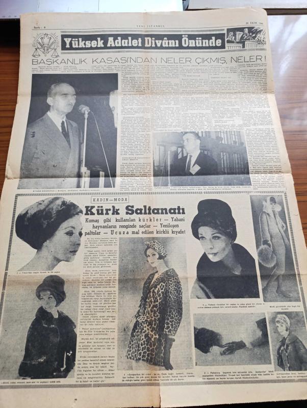 Yeni İstanbul Gazetesi - 26 Ekim 1960 - Dünkü Tanıklar Düşükleri İtham Etti - Maliye Bakanı Ekrem Alican Rum Patriği Athenagoras Ve Milli Emniyet Mensupları da Dünkü Celsede Dinlendiler Fotoğraf - Yassıada Davalarının Sıraları Belli Oldu - 31 Ekim Pazartesi Günü Başlayacak Bebek Davasında Opera Sanatkarı Ayhan Aydan Şahit Olarak Dinlenecek - Duruşmada Adnan Menderes Ve Ethem Menderes Fotoğraf - Başbakanlık Kasasından Neler Çıkmış Neler - Anayasa Tasarısı Semineri Başladı - James Bond Çizen İan Fleming - Cici Teyze Çizen Saunders Ve Ernst - Macera Kapıları Yazan Jean Hougron Yazı Dizisi - Kennedy Nixon'a Münazara Konusunda Meydan Okuyor - Ziya Gökalp Dün Bütün Yurtta Anıldı - Fidel Castro Aleyhtarlarının Faaliyeti - A Milli Takım Namzetleri Beyoğluspor'u 4 0 Yendiler - Estetik Ameliyat Tıp Dünyasında Mucize - Ingrid Bergman Saadetini Anlatıyor - Edinburg Film Festivali - Yüksek Adalet Divanı Önünde - Turan Güneş İfade Verdi Fotoğraf - Kadın Moda - Kürk Saltanatı, Habib Edib Törehan tarafından kaleme alınmıştır. Yeni İstanbul Gazetesi - 26 Ekim 1960 - Dünkü Tanıklar Düşükleri İtham Etti - Maliye Bakanı Ekrem Alican Rum Patriği Athenagoras Ve Milli Emniyet Mensupları da Dünkü Celsede Dinlendiler Fotoğraf - Yassıada Davalarının Sıraları Belli Oldu - 31 Ekim Pazartesi Günü Başlayacak Bebek Davasında Opera Sanatkarı Ayhan Aydan Şahit Olarak Dinlenecek - Duruşmada Adnan Menderes Ve Ethem Menderes Fotoğraf - Başbakanlık Kasasından Neler Çıkmış Neler - Anayasa Tasarısı Semineri Başladı - James Bond Çizen İan Fleming - Cici Teyze Çizen Saunders Ve Ernst - Macera Kapıları Yazan Jean Hougron Yazı Dizisi - Kennedy Nixon'a Münazara Konusunda Meydan Okuyor - Ziya Gökalp Dün Bütün Yurtta Anıldı - Fidel Castro Aleyhtarlarının Faaliyeti - A Milli Takım Namzetleri Beyoğluspor'u 4 0 Yendiler - Estetik Ameliyat Tıp Dünyasında Mucize - Ingrid Bergman Saadetini Anlatıyor - Edinburg Film Festivali - Yüksek Adalet Divanı Önünde - Turan Güneş İfade Verdi Fotoğraf - Kadın Moda - Kürk Saltanatı adlı eser Türkçe dilindedir.