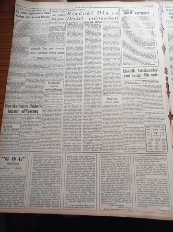 Yeni İstanbul Gazetesi - 27 Şubat 1956 - Kıbrıs'la İlgili Yeni Temaslar - Makarios İngiltere'ye Cevabını Dün Bildirdi - Adnan Menderes Yeni Bir Üniversiteler Kanunu Çıkartacağız - Vali Fahrettin Kerim Gökay Elektrik Türbinine Yol Verirken Muhaliflerini De Topa Tuttu - Sovyetlerin İçerden Baltalama Tekniği - Torik Balığının İçinde Kasım Gülek'e Verilen İstida - Halide Edip Adıvar Pazartesi Konuşmaları - Gog Yazan Giovanni Papini Yazı Dizisi - Elektrik Fabrikasında Yeni Tesisler Dün Açıldı - Herkesin Ağzında Bir Muhtariyet Kelimesi - Balıkçılara Hükümetin Yapacağı Yeni Yardımlar - Suriye İktisadi Heyeti Bugün Geliyor - Beynelmilel Otomobil Sergisi - 10 Ton Kaplumbağa Kurbağa Ve Salyangoz Sattık - Denizli İstanbul'u Yine Yendi - Küçük Hikâye Pazar Uykusu - Galatasaray'ın 50. Yıl Pilavı 18 Mart'ta - Türkiye Kros Birinciliği - Opon Ağrı Kesici - Remington Rand Daktilo - Çapamarka adlı eser, Kitap > Süreli Yayınlar > Gazeteler > Türkiye > Genel > Günlük kategorisinde İkinci El olarak satıştadır.