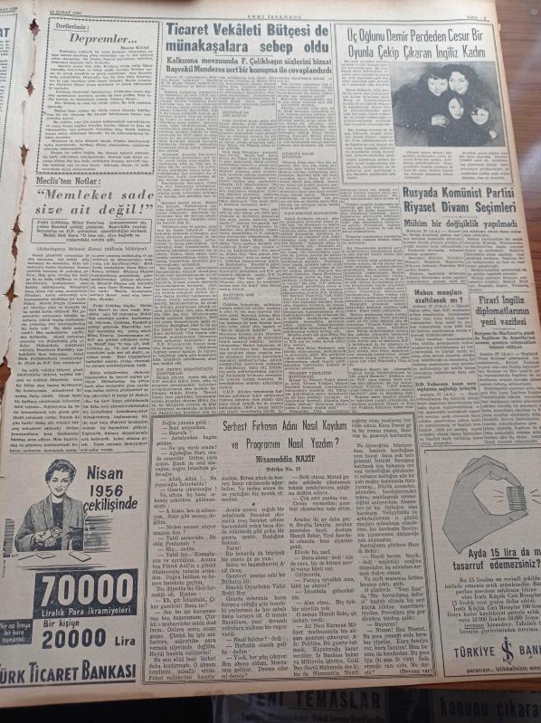 Yeni İstanbul Gazetesi - 28 Şubat 1956 - Makarios Amerikan Konsolosu İle Görüştü - Dün Krala Usulen İstifasını Veren Karamanlis Kabinesini Yeniden Teşkil Edecek - Büyük Millet Meclisinde Kalkınma Mevzuunda Tartışmalar - Başvekil Adnan Menderes - Ticaret Vekili Fahreddin Ulaş - İstanbul'da Örfi İdare Uzatılıyor - Yavuz Abadan - Kalp Cerrahisi Üstadı Profesör Beck Geliyor - Kolad Derneği - Fil Hamdi'nin Yeni Marifeti - Gog Yazan Giovanni Papini Yazı Dizisi - Rusya'da Komünist Partisi Riyaset Divanı Seçimleri - Vali Fahrettin Kerim Gökay'ın Pazar Nutku Gazetelere Yanlış Aksetmiş - Metro Projesi - Maclean Ve Burgess Bilmecesinin Hikayesi - Demiryollarımızın Uzunluğu 7846 Kilometre - Fenerbahçe Galatasaray Maçı Lig Müsabakalarının En Sonuna Kaldı - Fenerbahçeli Futbolcu Mehmet Ali Has - Film Yıldızı Ses Sanatkarı Necla İz - Çapamarka - Opon Ağrı Kesici - Puro Tuvalet Sabunları, Habib Edib Törehan tarafından kaleme alınmıştır. Yeni İstanbul Gazetesi - 28 Şubat 1956 - Makarios Amerikan Konsolosu İle Görüştü - Dün Krala Usulen İstifasını Veren Karamanlis Kabinesini Yeniden Teşkil Edecek - Büyük Millet Meclisinde Kalkınma Mevzuunda Tartışmalar - Başvekil Adnan Menderes - Ticaret Vekili Fahreddin Ulaş - İstanbul'da Örfi İdare Uzatılıyor - Yavuz Abadan - Kalp Cerrahisi Üstadı Profesör Beck Geliyor - Kolad Derneği - Fil Hamdi'nin Yeni Marifeti - Gog Yazan Giovanni Papini Yazı Dizisi - Rusya'da Komünist Partisi Riyaset Divanı Seçimleri - Vali Fahrettin Kerim Gökay'ın Pazar Nutku Gazetelere Yanlış Aksetmiş - Metro Projesi - Maclean Ve Burgess Bilmecesinin Hikayesi - Demiryollarımızın Uzunluğu 7846 Kilometre - Fenerbahçe Galatasaray Maçı Lig Müsabakalarının En Sonuna Kaldı - Fenerbahçeli Futbolcu Mehmet Ali Has - Film Yıldızı Ses Sanatkarı Necla İz - Çapamarka - Opon Ağrı Kesici - Puro Tuvalet Sabunları adlı eser Türkçe dilindedir.