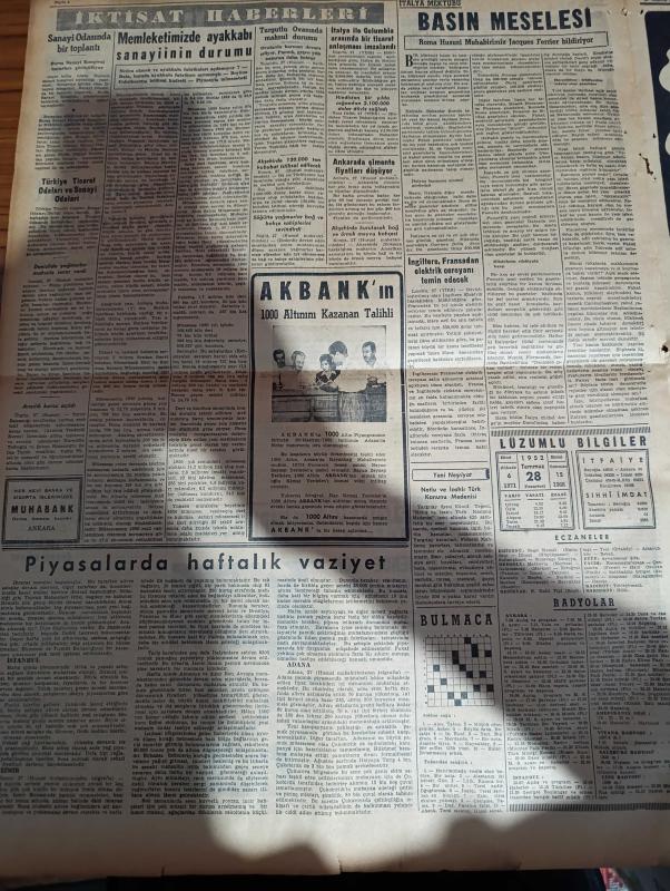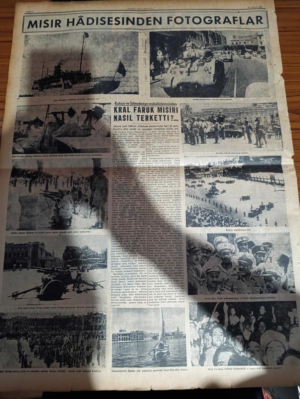 Yeni İstanbul Gazetesi - 28 Temmuz 1952 - Mustafa Nermi - General Necip yeni İstanbul'a önemli bir beyanat verdi- 1944 yılında vuku bulan yeni bir kurşuna dizme hadisesi- Sümerbank mamüllerinde yapılacak ucuzlatma- Mısır'da parlamento 10 gün sonra toplanıyor- Madam Evita Peron öldü- Yeni kağıt paralar- Olimpiyatlarda grekoromen'de Sovyet Rusya şampiyonluğu aldı- Medrano sirki- Esir Şehrin İnsanları Nurettin Demir (Kemal Tahir) yazı dizisi - kadın ve çarşaf - büyük bir Amerikan filosu Şehrimize geliyor- Mısır'da hanedana ait saraylara Ordu el koydu - Paris'in büyük sokaklarından birine Ankara adı veriliyor- Yeni İstanbul 1952 Helsinki olimpiyatında- Memleketimizde ayakkabı sanayisinin durumu - Piyasalarda haftalık vaziyet- Volvo- Fendt Dieselross Traktörleri - Mısır hadisesinden fotoğraflar - Kral Faruk Mısırı nasıl terk etti- Orta doğu'nun karanlık durumu- Doğu Akdeniz'de tehlikeli bir cisim yüzüyor- savcı ve yargıçlar arasında yapılan tayin ve nakiller- Amerika'da Çelik sanayi grevi adlı eser, Kitap > Süreli Yayınlar > Gazeteler > Türkiye > Genel > Günlük kategorisinde İkinci El olarak satıştadır.