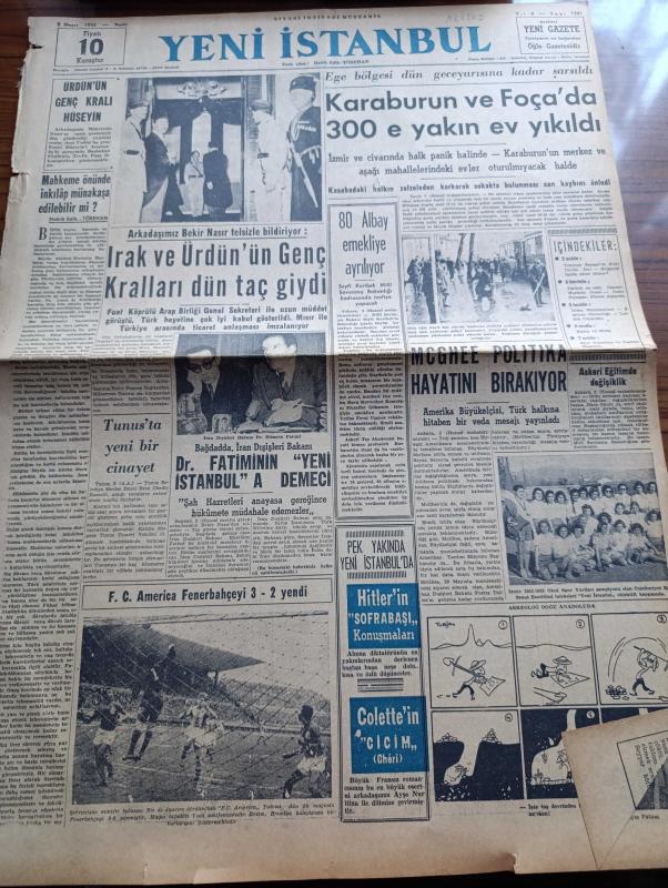 Yeni İstanbul Gazetesi - 3 Mayıs 1953 - Mahkeme Önünde İnkılap Münakaşa Edilebilir Mi Yazan Habib Edib Törehan Köşe Yazısı - Ürdün'ün Genç Kralı Hüseyin - Irak ve Ürdün'ün Genç Kralları Dün Taç Giydi - Bağdad'da İran Dışişleri Bakanı Doktor Fatimi'nin Yeni İstanbul'a Demeci - Brezilya Takımı F. C. America Fenerbahçe'yi 3 2 Yendi - Deprem Sebebiyle Karaburun Ve Foça'da 300 e Yakın ev Yıkıldı - Amerika Büyükelçisi McGhee Türk Halkına Hitaben Bir Veda Mesajı Yayınladı - Küçük İnsanlar Yazan Faik Baysal Yazı Dizisi - Pazar Konuşmaları Yazan Baydar Derler - Üç Yugoslav Havacısı Amerika'ya İltica Etti - Dumlupınar Denizaltısının Batmasında Sebep Olan Naboland Süvarisi Lorentzon İsveç'te de Yargılanacak - Avrupa Hafif Siklet Boks Şampiyonluğu - Dünya Casuslarının Piri Konsül Regülüs Yazan Mustafa Cezar - Büyük Röportaj Serisi İslam Memleketleri Yazan Fikret Adil - Meşhur Kompozitör Arturo Toscanini - Kral Kupasını Dün Blackpool Kazandı - Türkiye Futbol Birincilikleri - Arı Unları - Gripin adlı eser, Kitap > Süreli Yayınlar > Gazeteler > Türkiye > Genel > Günlük kategorisinde İkinci El olarak satıştadır.