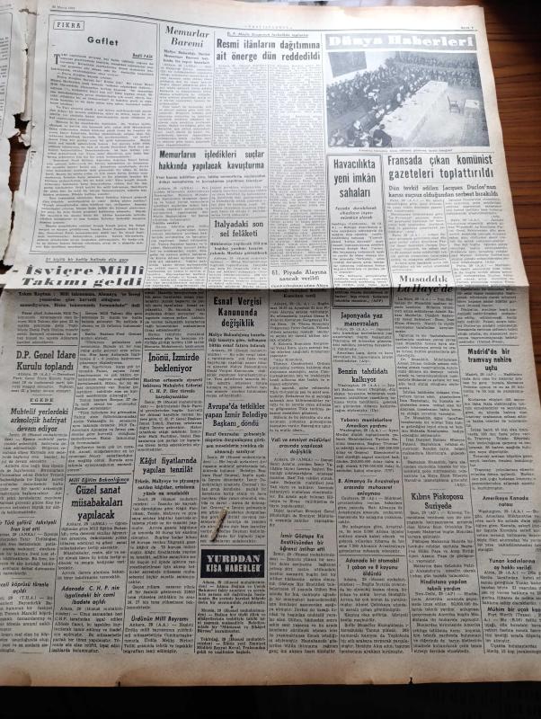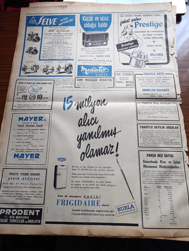 Yeni İstanbul Gazetesi - 30 Mayıs 1952 - Mustafa Nermi - Doğu Almanya Sovyetlere Birlikte Harbe Karar Verdi - Kore'de Komünistlerin Şiddetli Topçu Ateşi - Ara Seçimler 21 Eylül'de Yapılacak - General Eisenhower Amerika'ya Dönüyor - Rusya'nın İngiltere Büyükelçisi Geri Çağırıldı - Askerlik Süresinin 1,5 Yıla İndirilmesi Görüşülüyor - İsviçre Milli Takımı Geldi - İnkılap Partisi Muhakkak Kurulacak - Maskeli Hakikat 1 Yazan Deniz Albayı Tevfik İnci Yazı Dizisi - İstanbul'un 499. Fetih Yılı Münasebetiyle Mevlid Okundu - İstanbul Şehir Tiyatrosu Turneye Çıkıyor - Bedii Faik - İsmet İnönü İzmir'de Bekleniyor - Fransa'da Çıkan Komünist Gazeteleri Toplattırıldı - Kıbrıs Piskoposu Makarius Suriye'de - Tunceli Köprüsü Törenle Açıldı - Rakı İmali Serbest Bırakılıyor - Bitlis Bölgesinde Çekirge Görüldü - Yeni İstanbul Gazetesi Himalaya'da - Avrupa'nın En Tehlikeli Adamı Skorzeny Anlatıyor Mussolini'yi Nasıl Kaçırdım Yazı Dizisi - Roja Briyantin - Selve Dizel Motorları - Mediator Radyo adlı eser, Kitap > Süreli Yayınlar > Gazeteler > Türkiye > Genel > Günlük kategorisinde İkinci El olarak satıştadır.