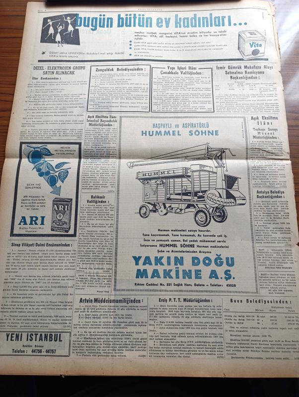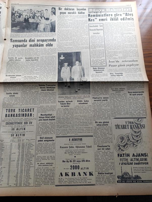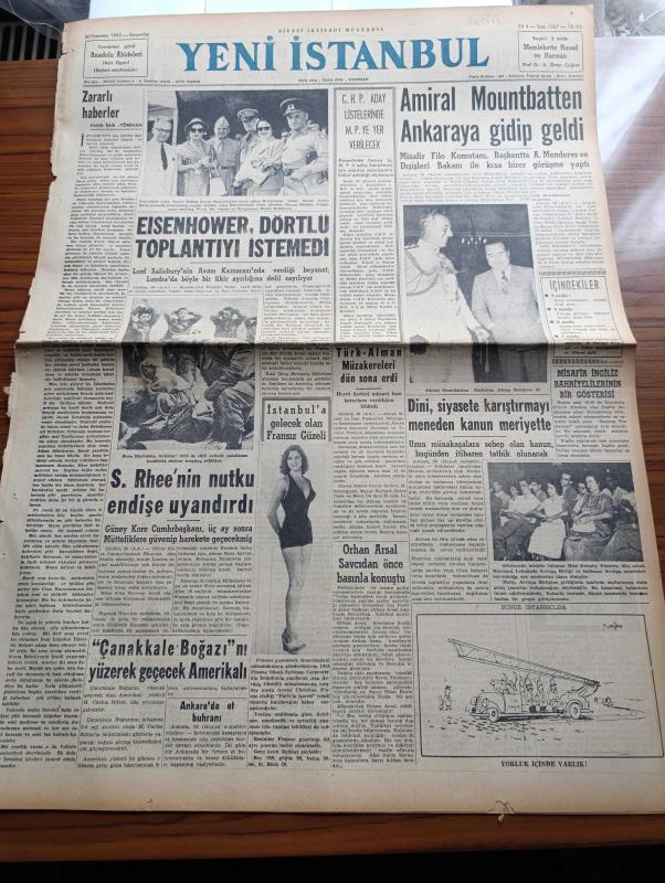 Yeni İstanbul Gazetesi - 30 Temmuz 1953 - Eisenhower Dörtlü Toplantıyı İstemedi - Güney Kore Cumhurbaşkanı S. Rhee'nin Nutku Endişe Uyandırdı - İstanbul'a Gelecek Fransız Güzeli Slyviane Carpentie - Dini Siyasete Karıştırmayı Meneden Kanun Meriyette - Amiral Mountbatten Ankara'da Adnan Menderes İle Görüştü - Türk Alman Müzakereleri Dün Sona Erdi - Samsun'da Dini Propaganda Yapan Nurcular Mahkum Oldu - Döner Ayna Yazan Halide Edip Adıvar Yazı Dizisi - Namık Zeki Aral - Taksim Beyazıt Arasında Troleybüs İşletilecek - Bir Ana Gözünü Satışa Çıkardı - Elma Yanardağı Endişe Doğurdu - Binbirgece Masalları Canem Çeviren Reşad Nuri Darago - Kore'de Yiyecek Tevziatı - Osmanlılarda Kürk - Gökbayrak Yazan Leon Cahun Yazı Dizisi - Ankara İstanbul İzmir Radyosu Programı - Bulmaca - Anıtkabir'in İnşaatı Tamamlanıyor - Penisilin'i Bulan Doktor Fleming'i Evlenme Hikayesi - Suni Yemek Borusu - Gary Cooper Bir Boğa İle Güreşiyor - İslam Memleketleri Yazan Fikret Adil Yazı Dizisi - Arı Unları - Vita adlı eser, Kitap > Süreli Yayınlar > Gazeteler > Türkiye > Genel > Günlük kategorisinde İkinci El olarak satıştadır.