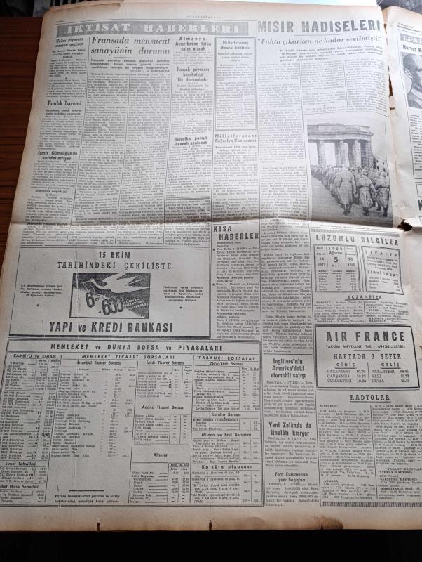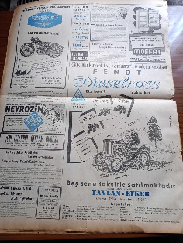 Yeni İstanbul Gazetesi - 5 Ağustos 1952 - Akdeniz Komutanlığı İçin Müzakereler Cereyan Ediyor - Florya Deniz Köşkünde Askeri İktisadi Toplantı - Kore'de Kızıl Genel Karargahı Bombalandı - İzmir'e Turist Akını - Amerika'dan Satın Alınan Hangarlar Gelmeye Başladı - Belçika'da Bir İsyan Teşebbüsü - Esir Şehrin İnsanları Yazan Nureddin Demir (Kemal Tahir) Yazı Dizisi - İstanbul Valisi Fahreddin Kerim Gökay'a Yugoslavyaya Resmen Davet Mektubu Verildi - Başbakan Adnan Menderes'in Dünkü Temasları - Baydar Derler - Eva Peron'un Naaşını 2.000.000 Kişi Ziyaret Etti - Yunan Komünist Partisi Genel Sekreteri Nikola Zaharyadis Yargılanacak - İskenderun'dan 480 İran Yahudisi Transit Geçti - Milletlerarası Coğrafya Konferansı - Norveç Kralı Yedinci Haakon - Galata Denildiği Zaman Neleri Hatırlarız - Dünyanın En Yaşlı Ağacı General Sharman 3500 Yıllık - London Films Stüdyolarında - Peter Finch - Zündapp Motosikletleri - Fendt Dieselross Traktörleri - Moffat Amerikan Buzdolabı - Nevrozin adlı eser, Kitap > Süreli Yayınlar > Gazeteler > Türkiye > Genel > Günlük kategorisinde İkinci El olarak satıştadır.