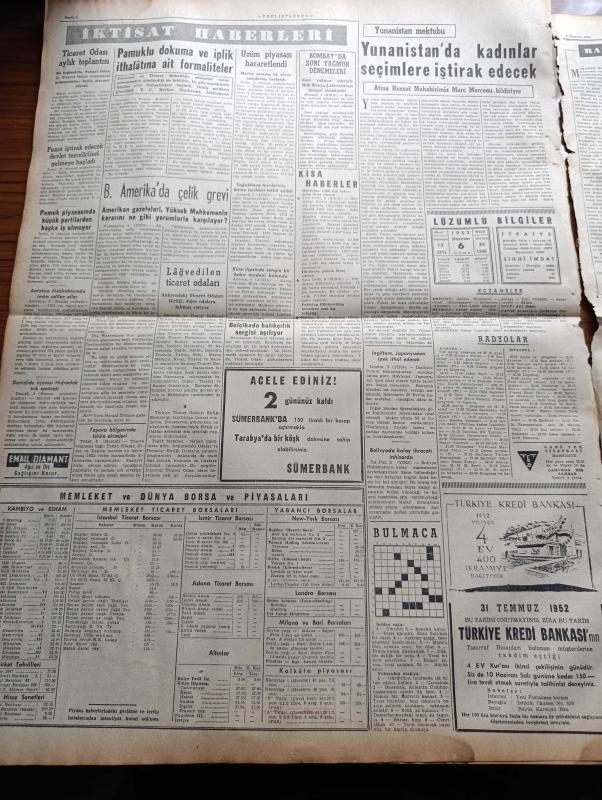 Yeni İstanbul Gazetesi - 6 Haziran 1952 - Mustafa Nermi - General Eisenhower Harbin Genişlemesini İstemiyor - Fransa'da Dün Kızıllar Yine Mağlup - Halk Partisinin Kanunsuz Aldığı Paralar Hakkında Yeni Bir Teklif - Amerika Sovyetleri Dün De Protesto Etti - Ankara'da Dost Yunan Kralını Karşılama Töreni Provası Yapıldı - Kraliçe Elizabeth 26. Yaş Gününü Kutladı - Maskeli Hakikat Yazan Deniz Albayı Tevfik İnci Yazı Dizisi - Araba Vapuru Seferleri Islah Ediliyor - Kore'ye Gönderilecek Bayram Hediyeleri - Yurtta Girişilen Sıtma Mücadelesi - Ingrid Bergman Eski Kocasını İtham Ediyor - İsrail Ürdün Hududunda Çarpışma- Yunanistan'da Kadınlar Seçimlere İştirak Edecek - Avrupa'nın En Tehlikeli Adamı Skorzeny Anlatıyor Mussolini'yi Nasıl Kaçırdım Yazı Dizisi - Kıbrıs Türkleri Arasında Yazan Fikret Adil Yazı Dizisi - Ramazanlık Köşe Yazısı - Sümerbank - Ziraat Bankası - Türk Ticaret Bankası - James Motosikletleri - Aga Radyo - Normag Traktör - Çapamarka - Orgeneral Holl Ankara'ya Geliyor adlı eser, Kitap > Süreli Yayınlar > Gazeteler > Türkiye > Genel > Günlük kategorisinde İkinci El olarak satıştadır.